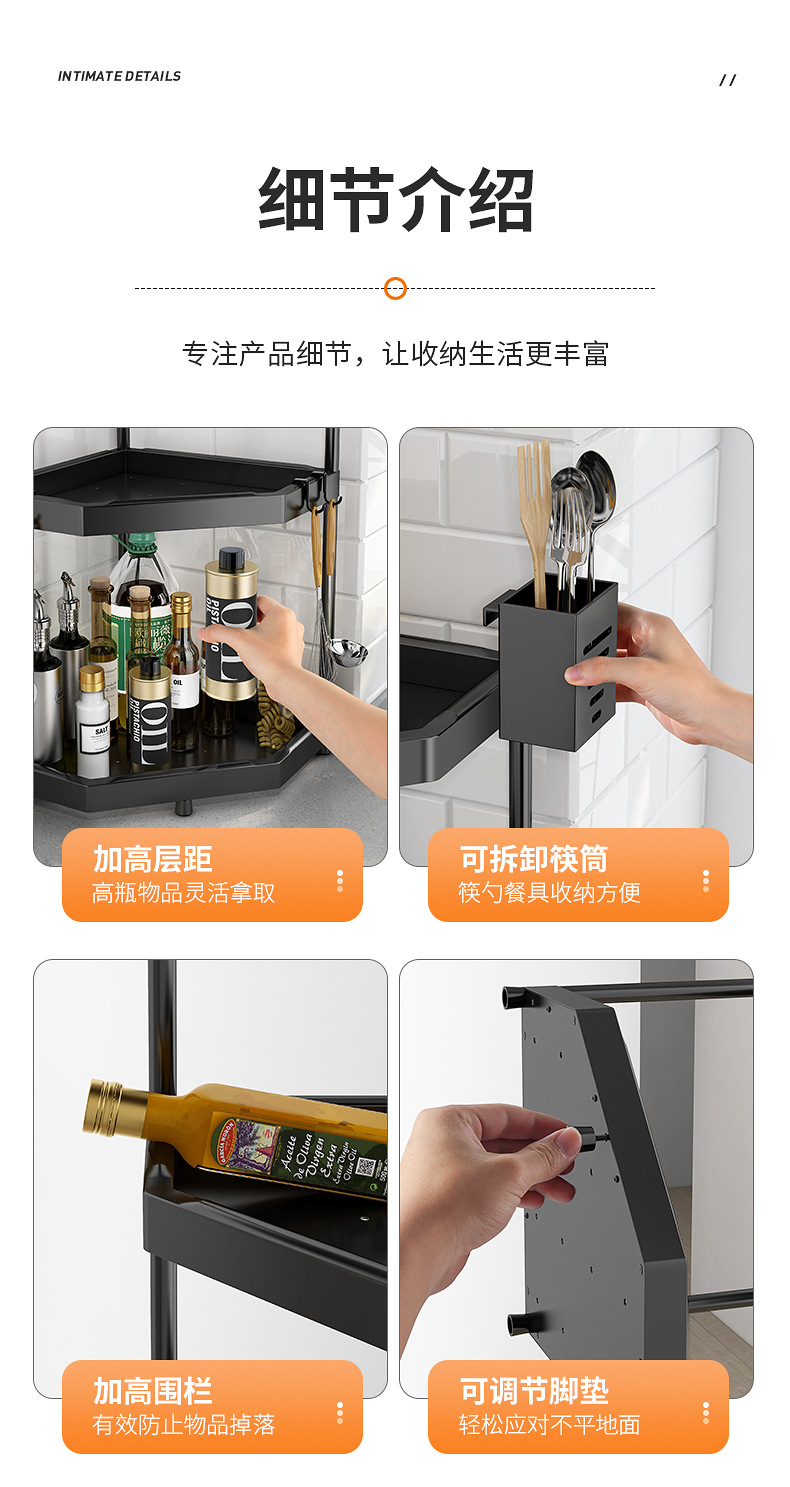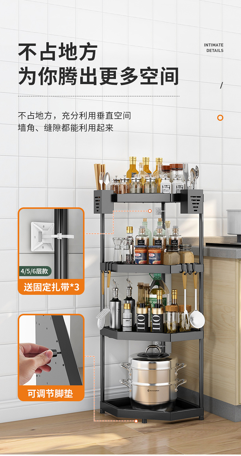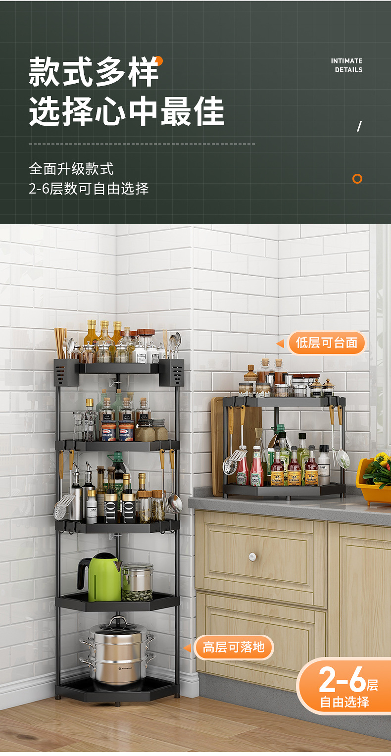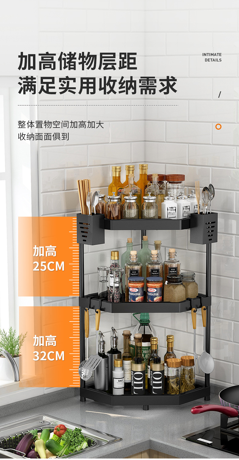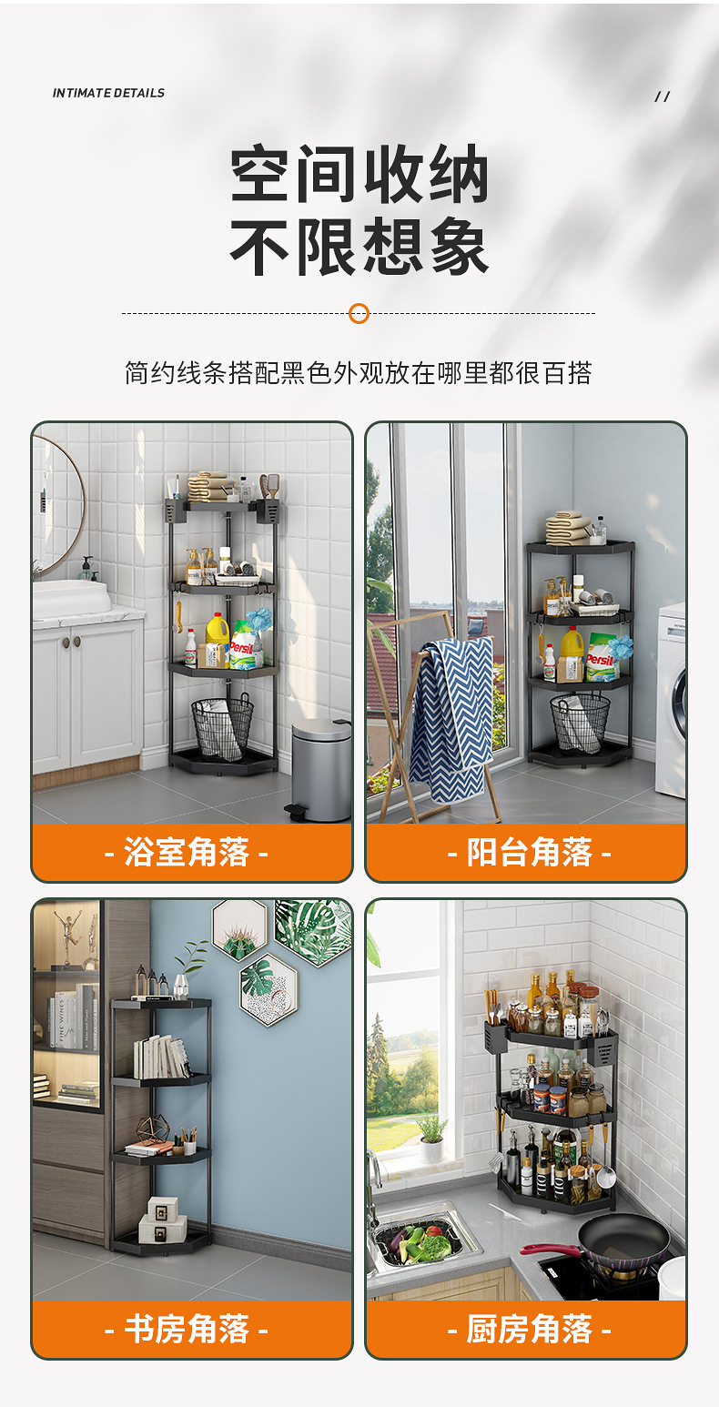 블랙 주방 코너 스토리지 랙 펀치 프리 삼각대 스테인레스 스틸 노래 랙 조리대 코너 스토리지 랙 다층