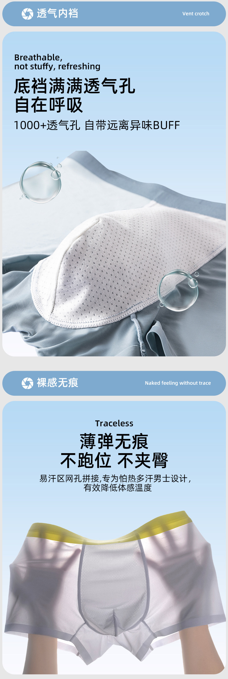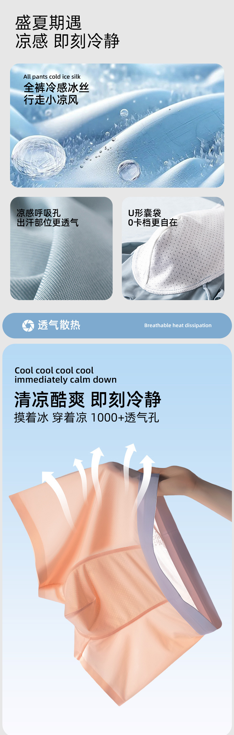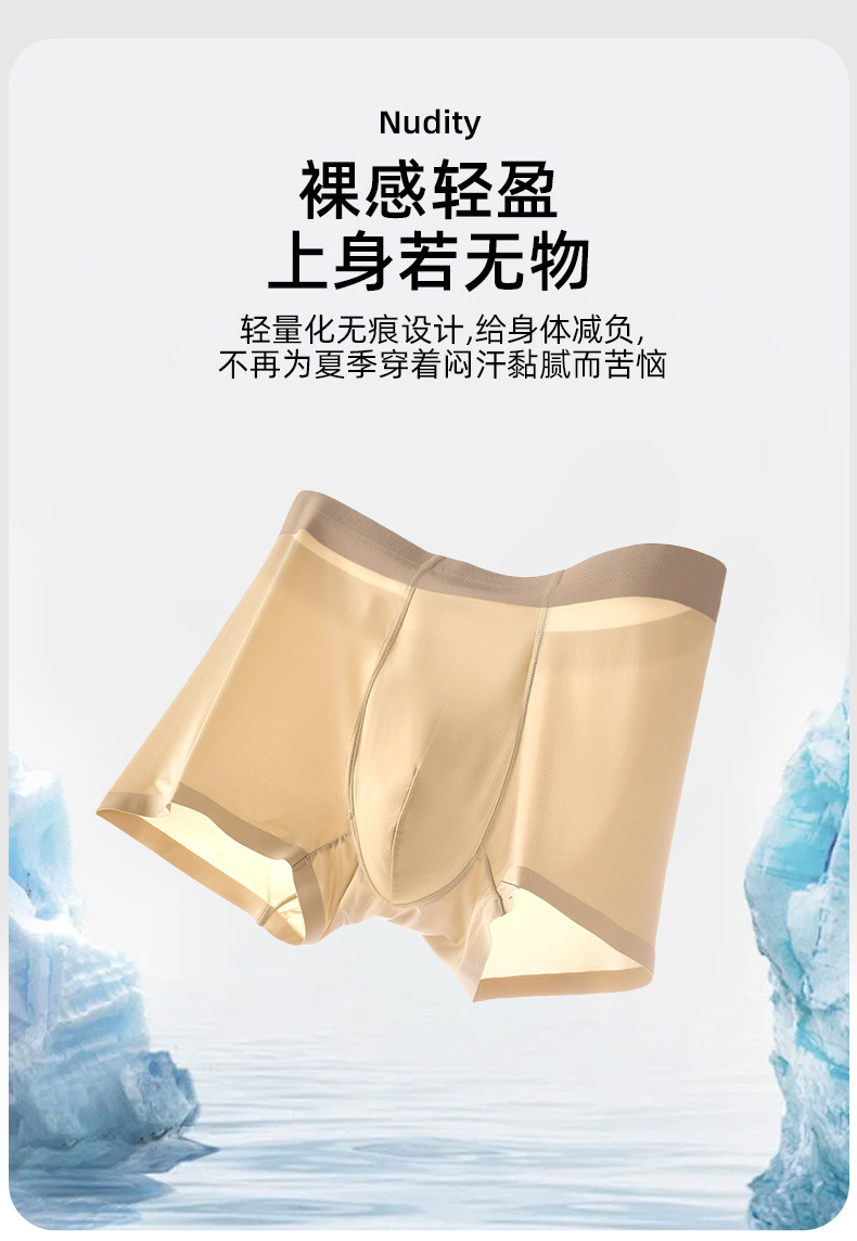 남성용 속옷 120수 아이스 실크 사각팬티 남성 여름용 얇고 통기성 좋은 무봉제 항균 사각팬티 여름 도매