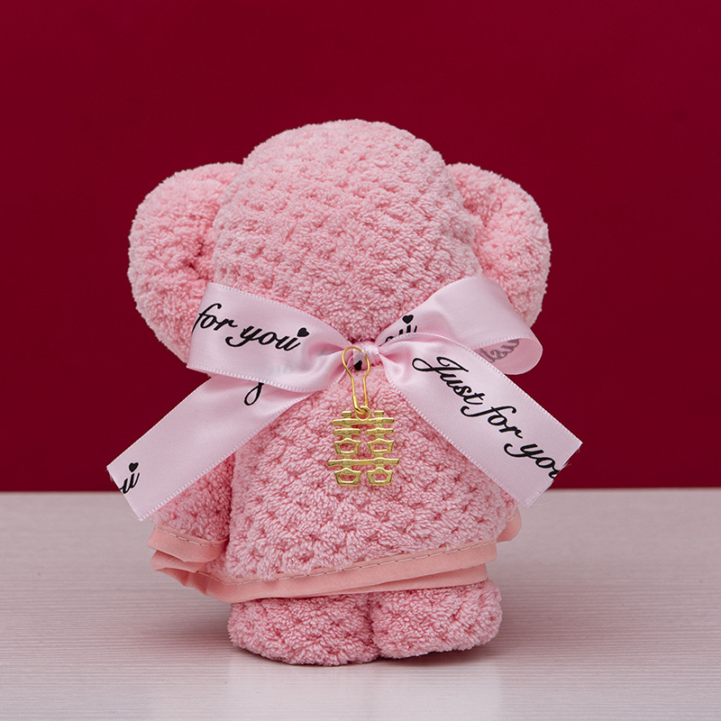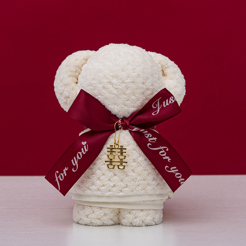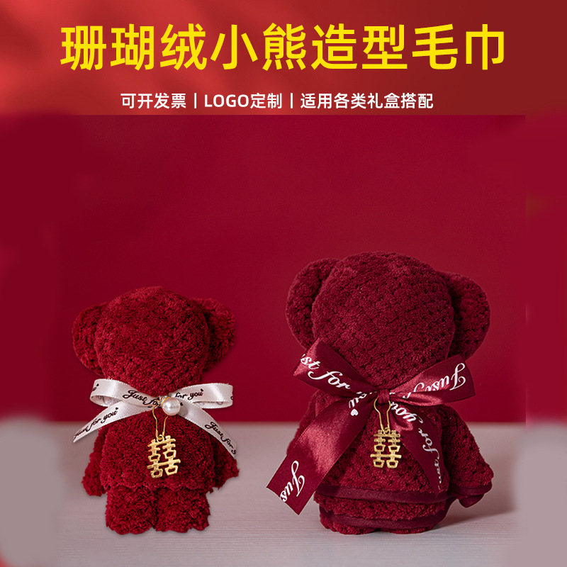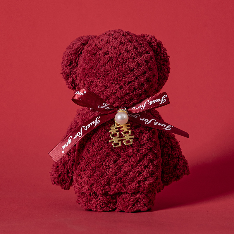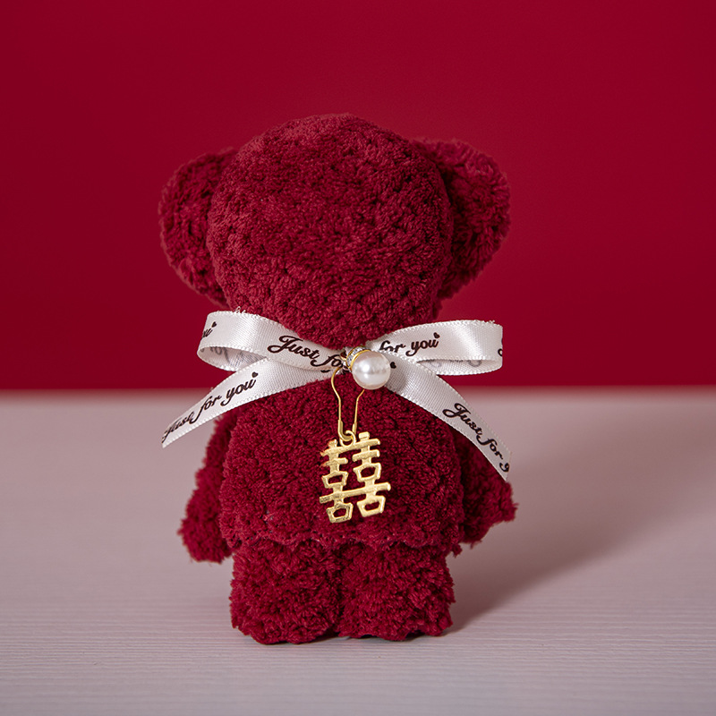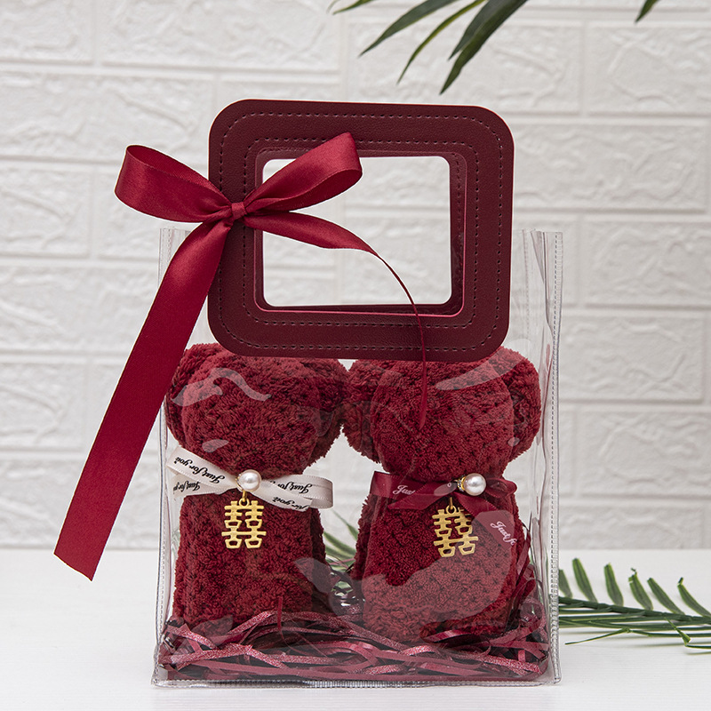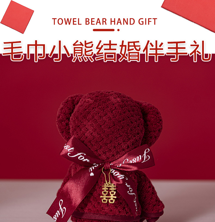 웨딩 타월 창조적 인 버건디 곰 수건 웨딩 샵 반환 결혼 선물 신부 들러리 실용적인 선물 상자스토어 가기