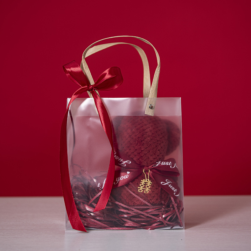 • (폴리에스테르 브로케이드) 작은 선물 가방 작은 빨간 곰 기본 스타일 + 해피 브랜드