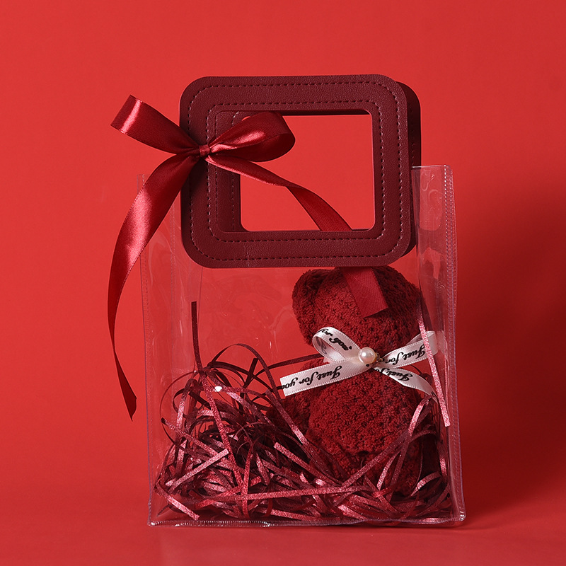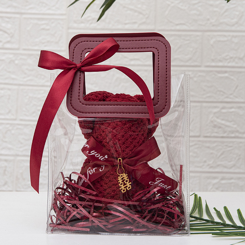웨딩 타월 창조적 인 버건디 곰 수건 웨딩 샵 반환 결혼 선물 신부 들러리 실용적인 선물 상자