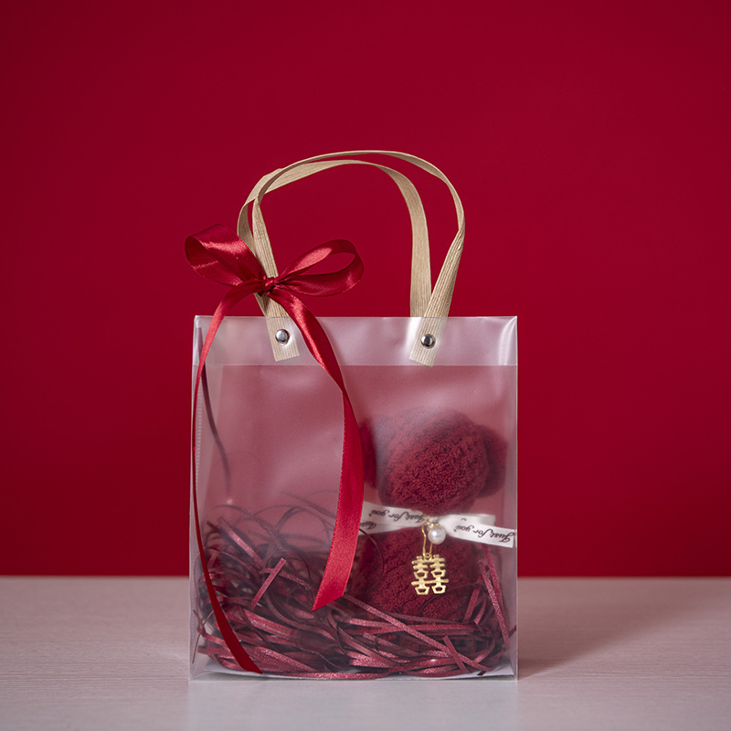 • (폴리에스테르 브로케이드) 레드 핸들 젤리백 더블베어 스타일