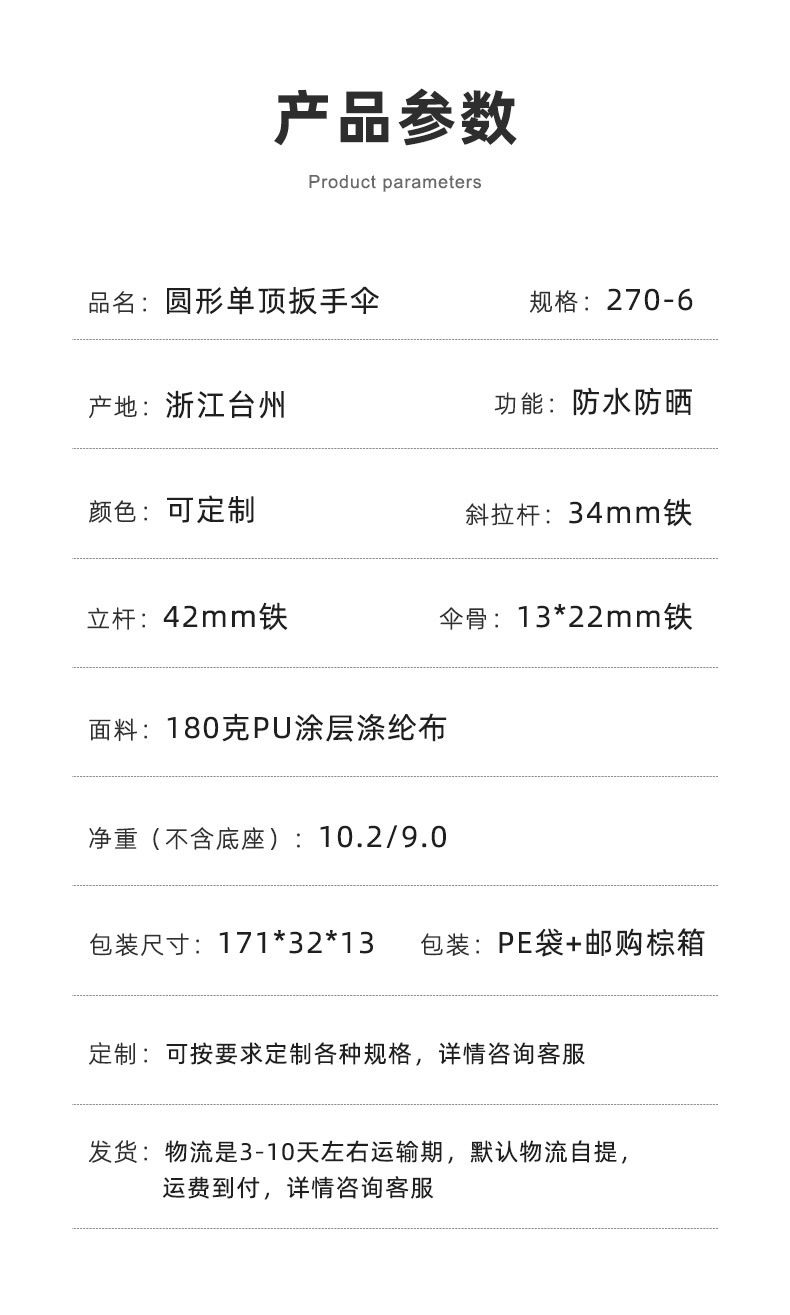 • 270-6 라운드 싱글 탑 렌치 우산 (물 주입 베이스 포함)