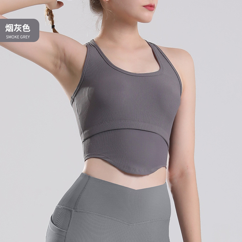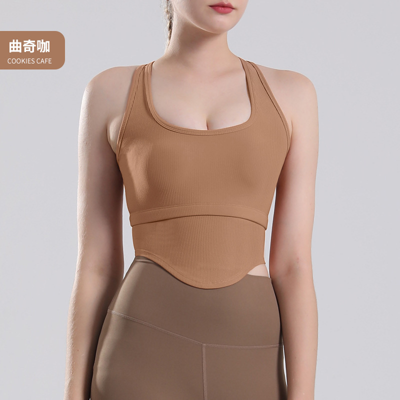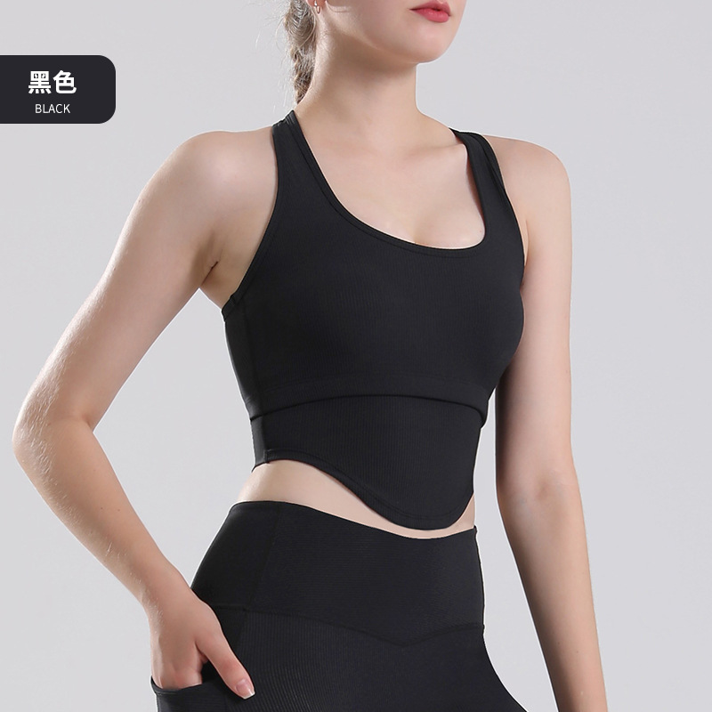 외부 착용 수직 실 스포츠 속옷 피트니스 충격 방지 중공 I-word 아름다운 등 이동식 가슴 패드 요가 조끼 도매