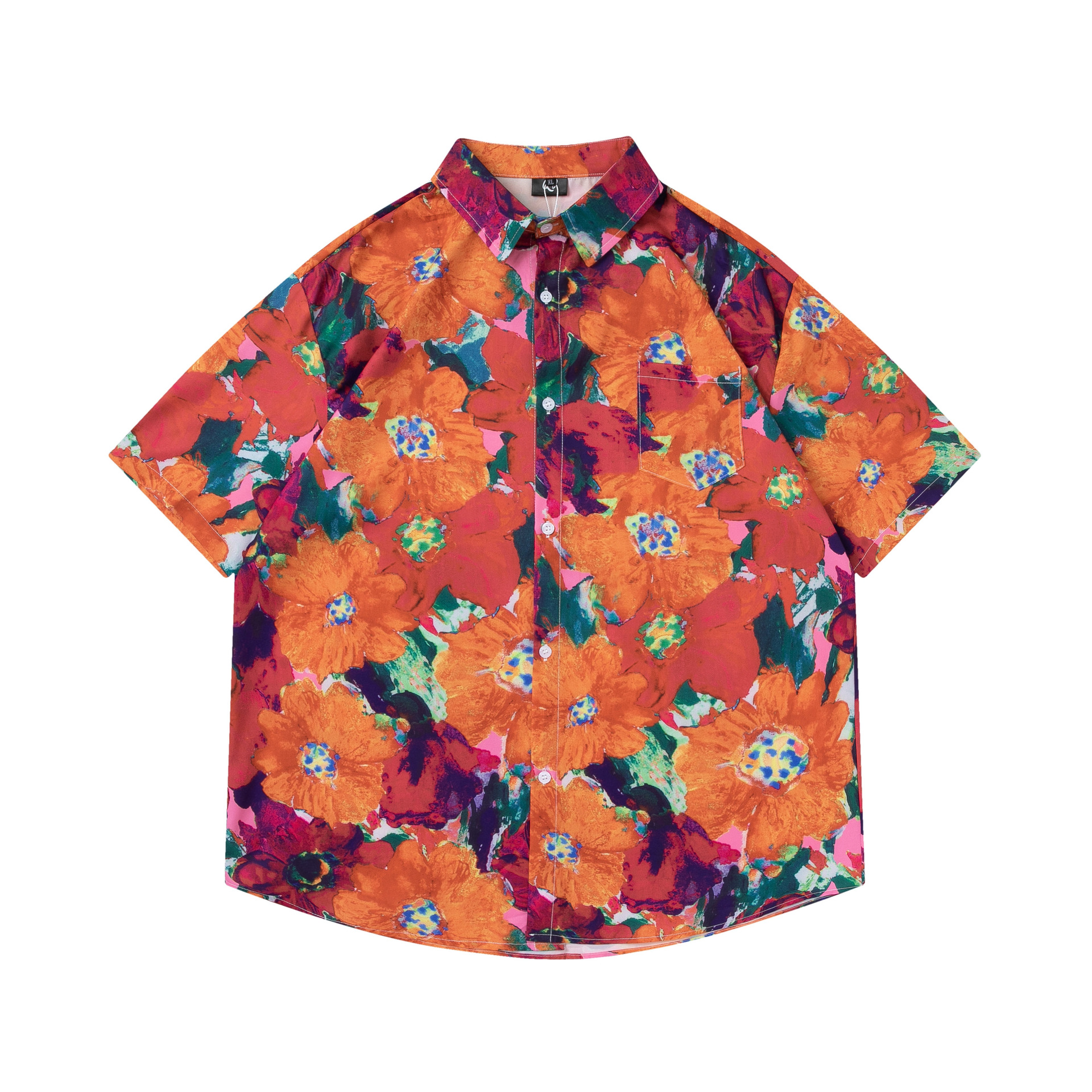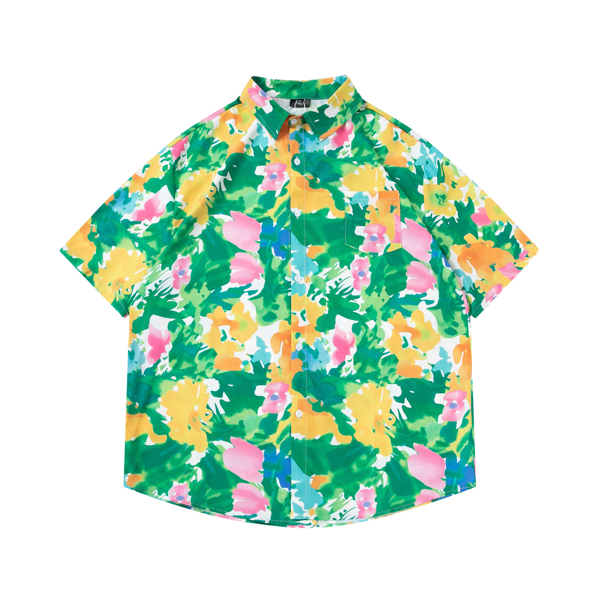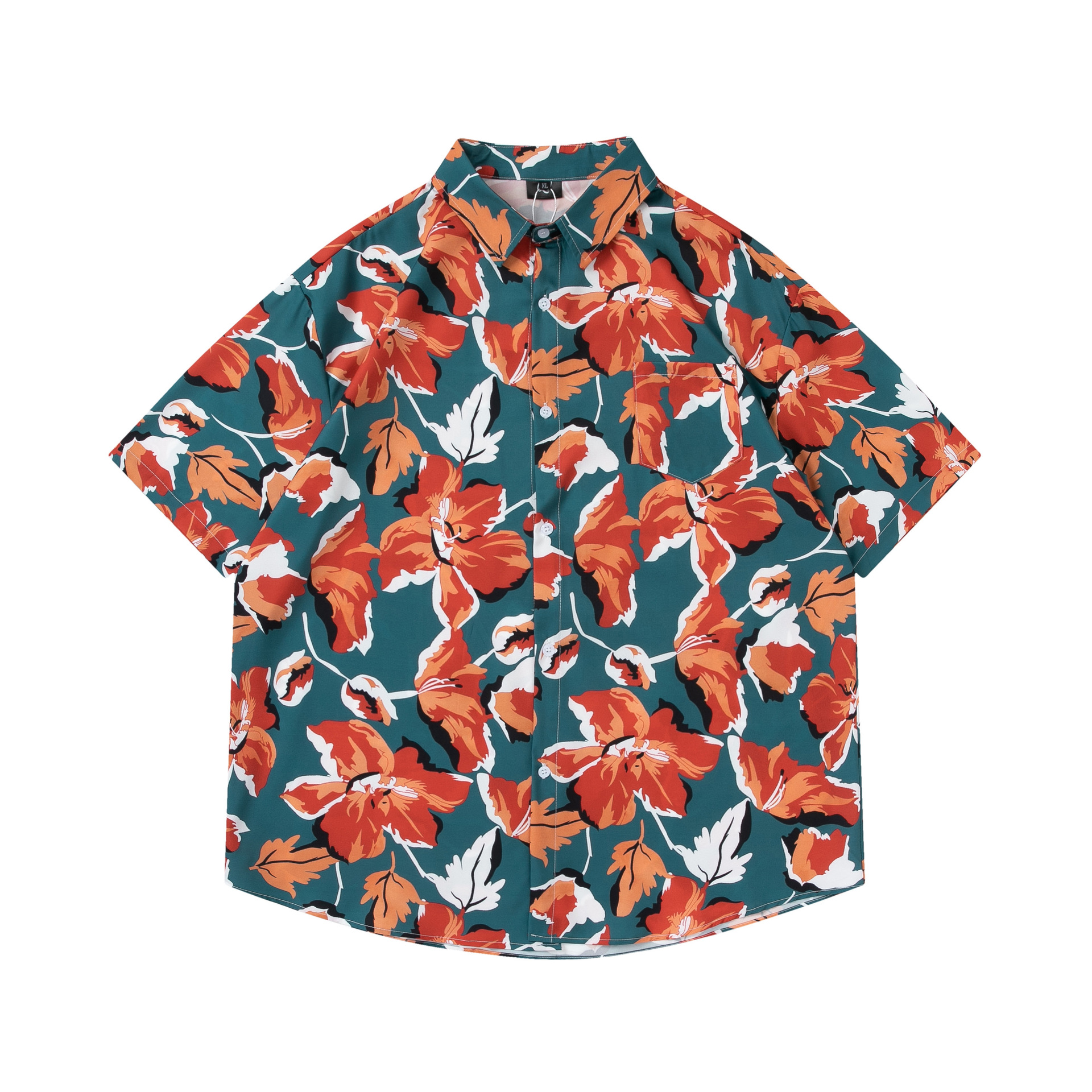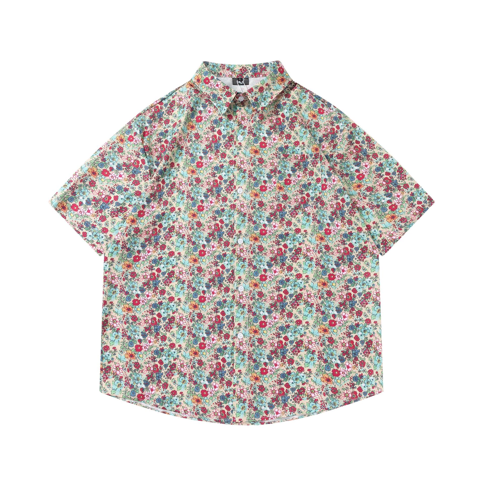 여름 빈티지 유화 플라워 셔츠 남성용 반팔 빈티지 셔츠 하와이안 느슨한 커플 코트 트렌디