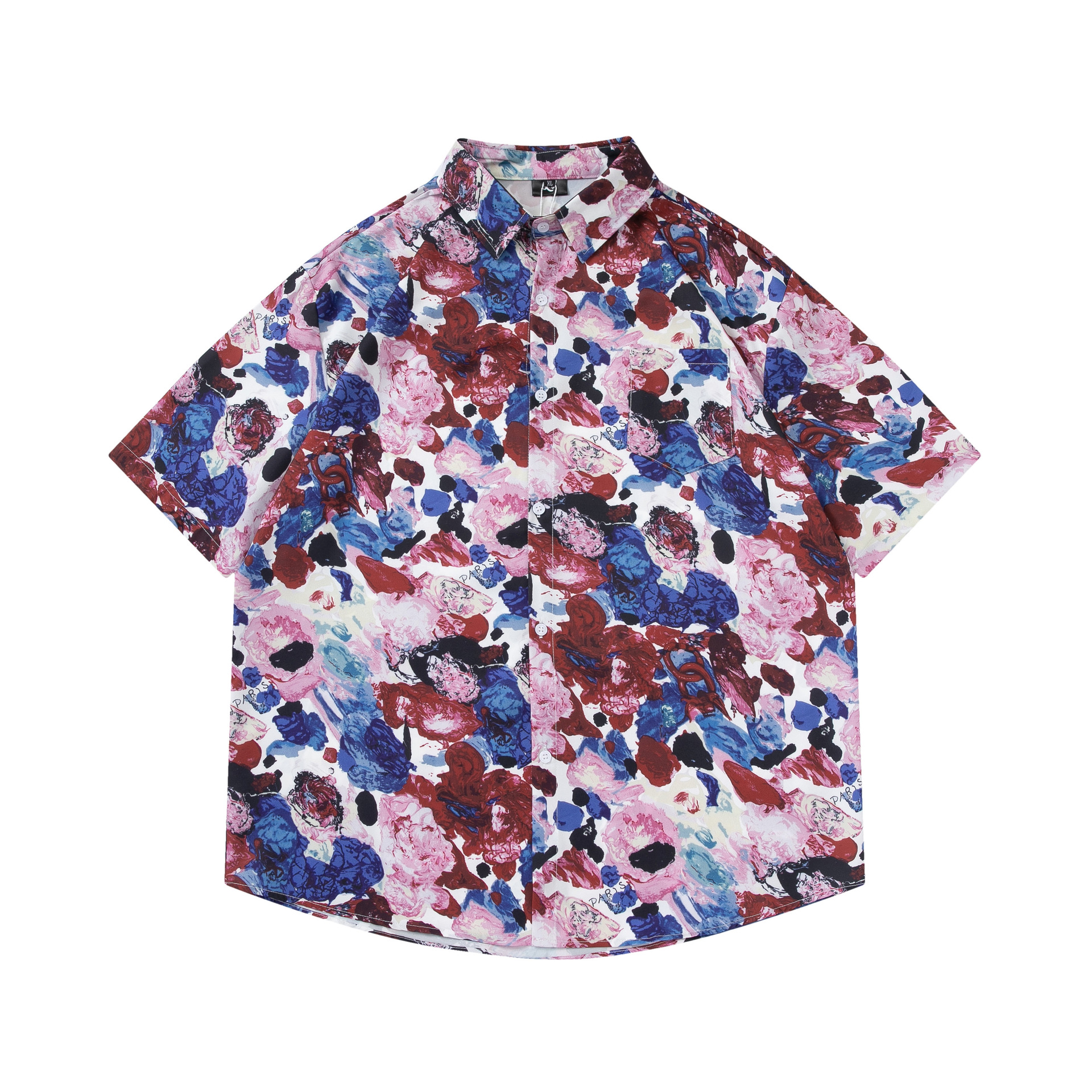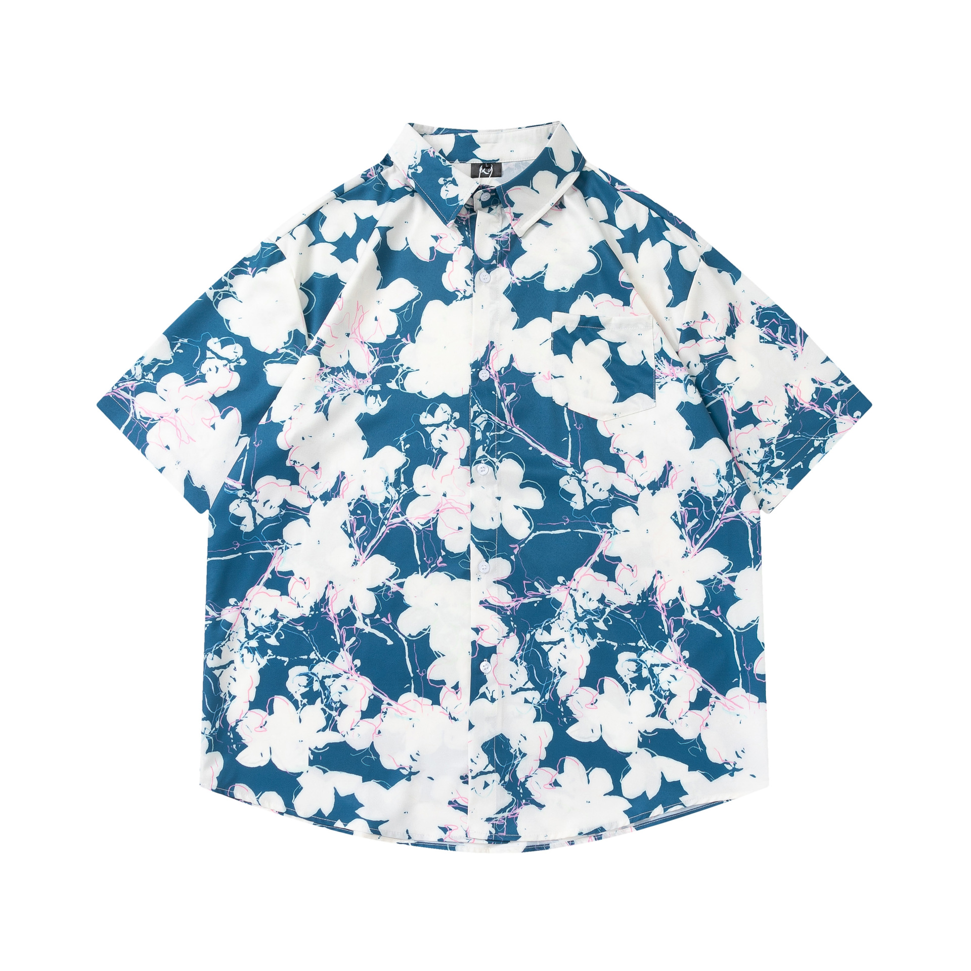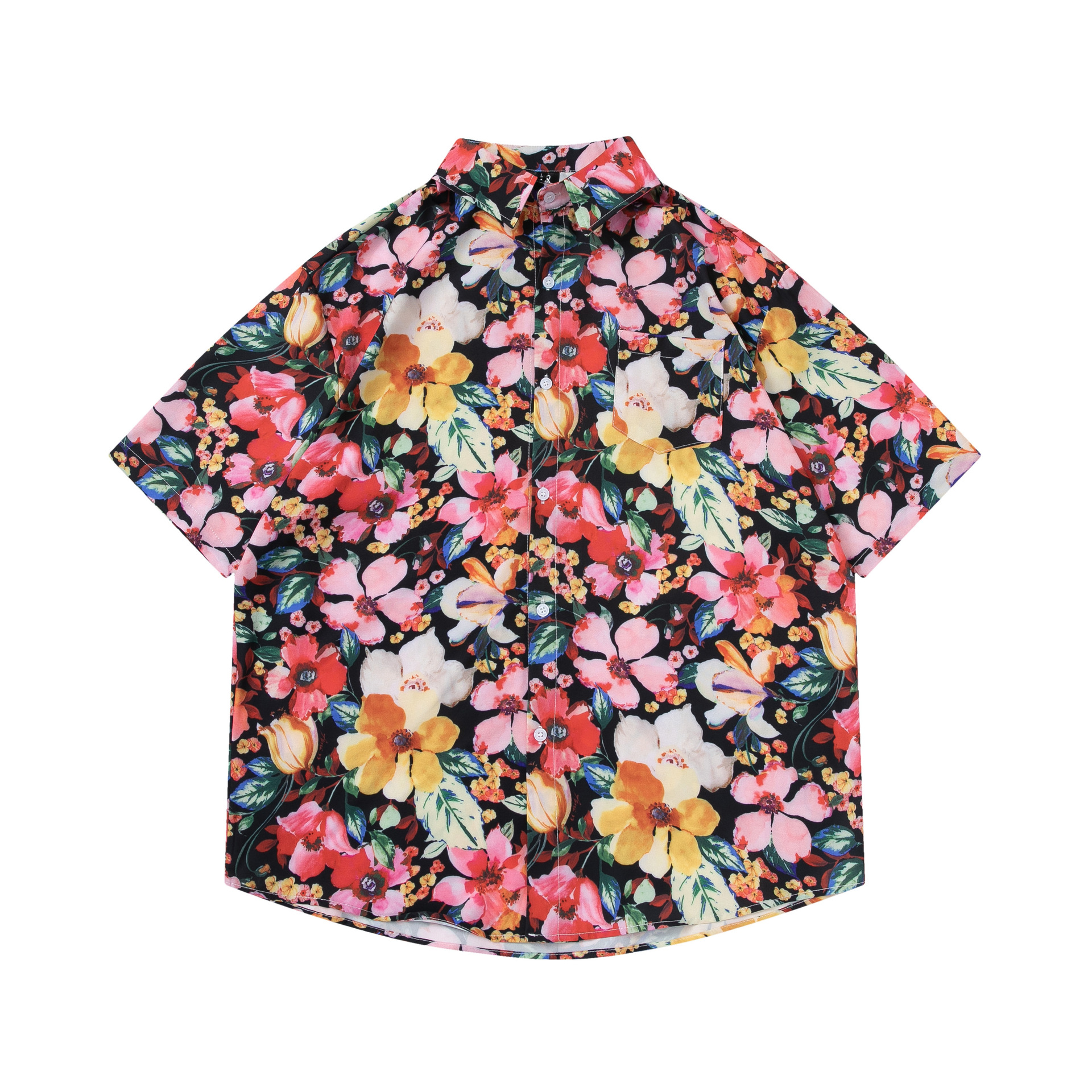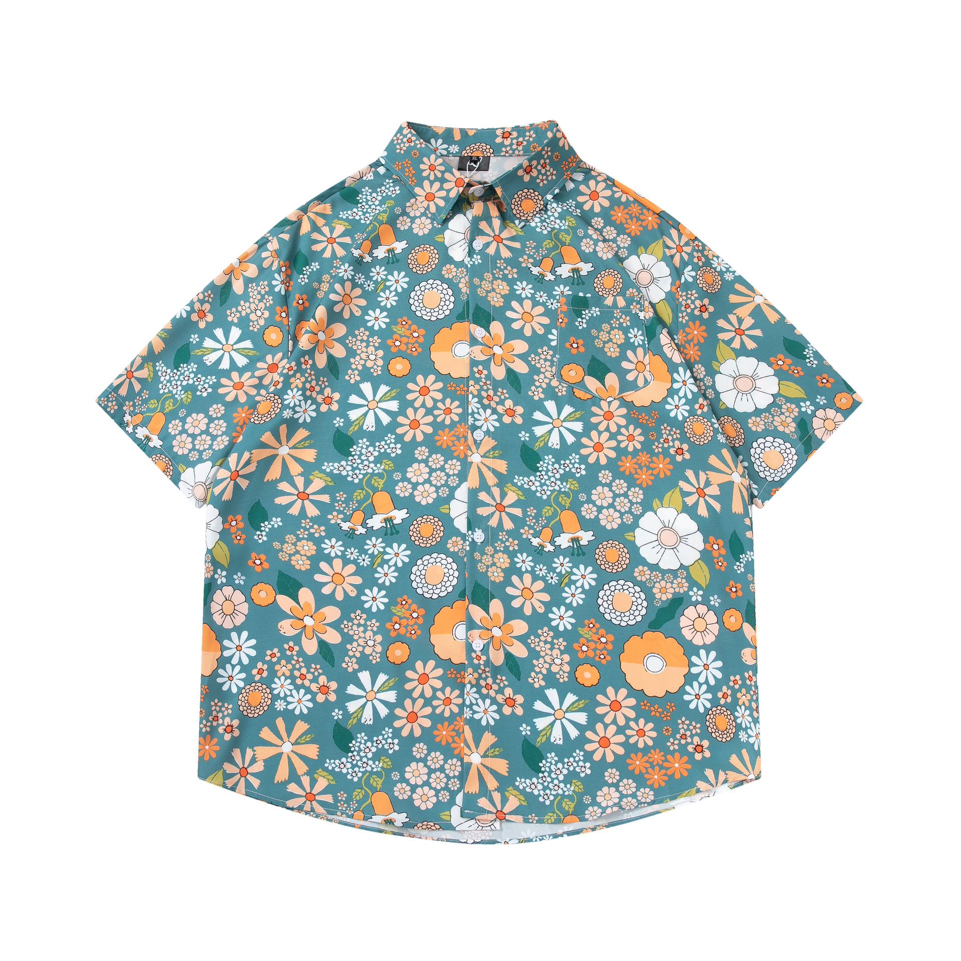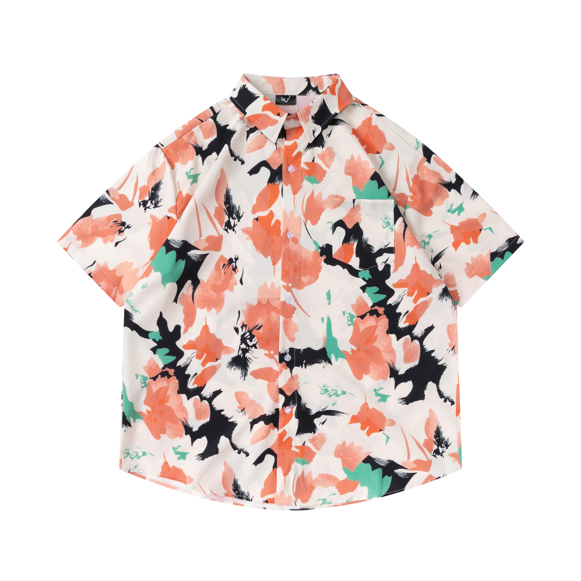 여름 빈티지 유화 플라워 셔츠 남성용 반팔 빈티지 셔츠 하와이안 느슨한 커플 코트 트렌디