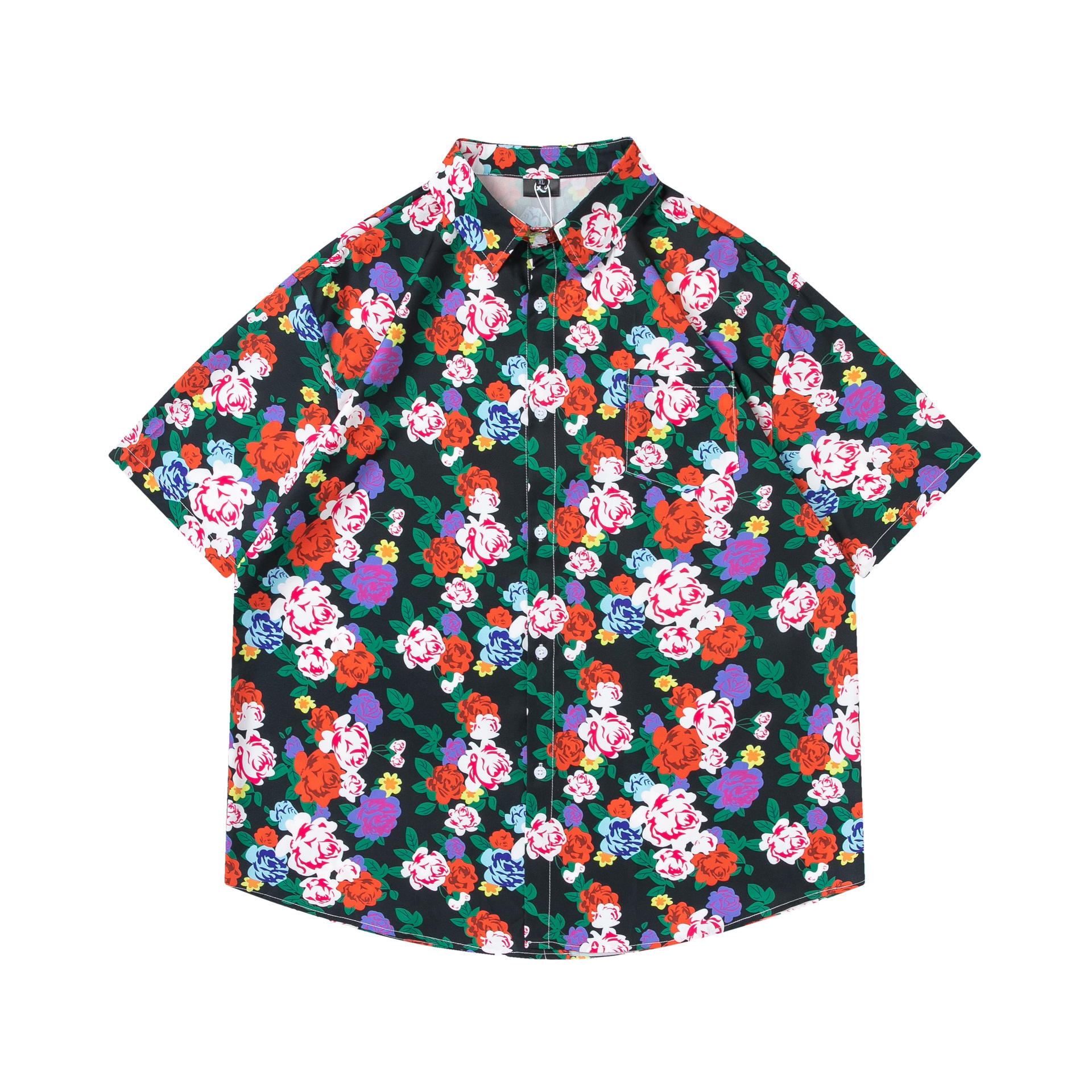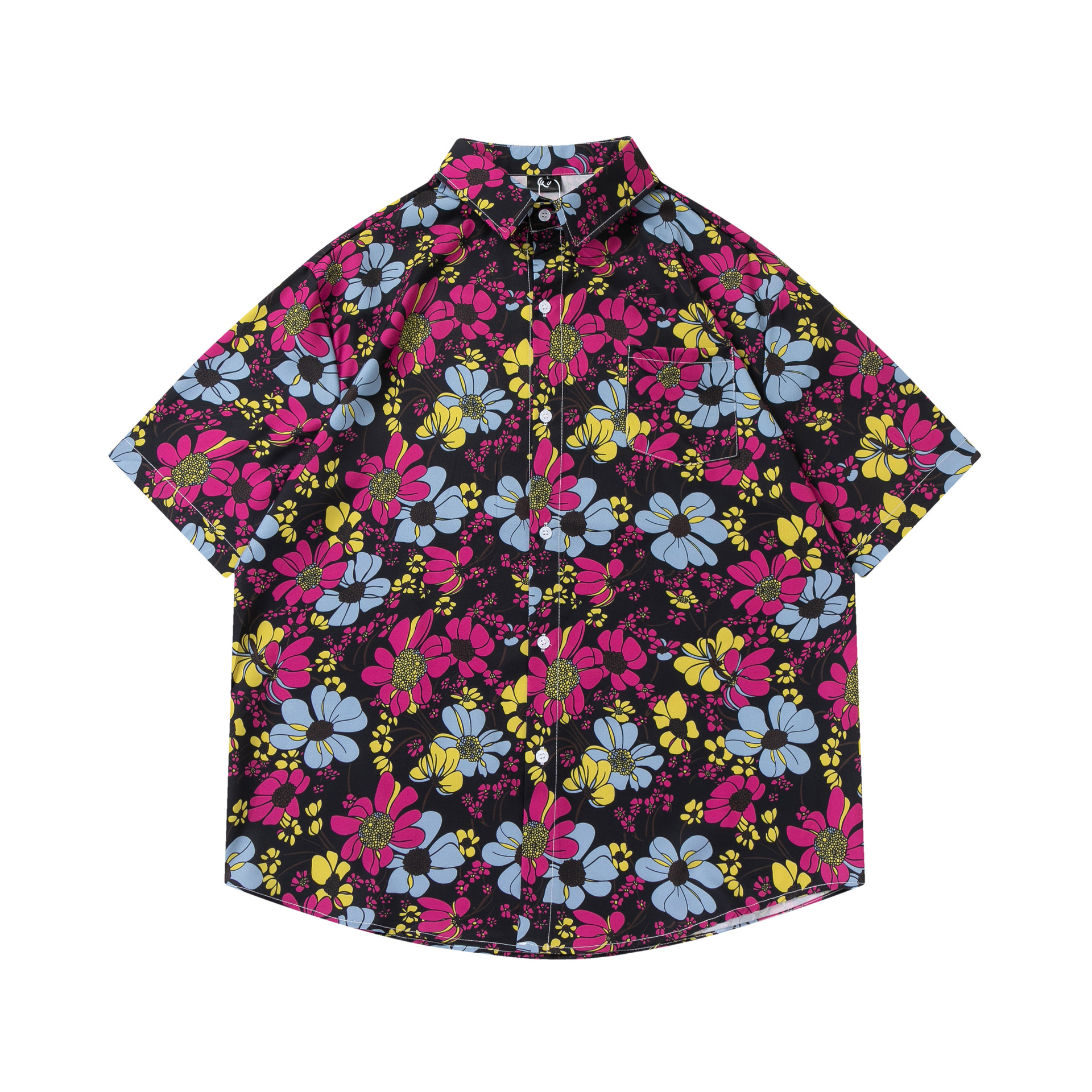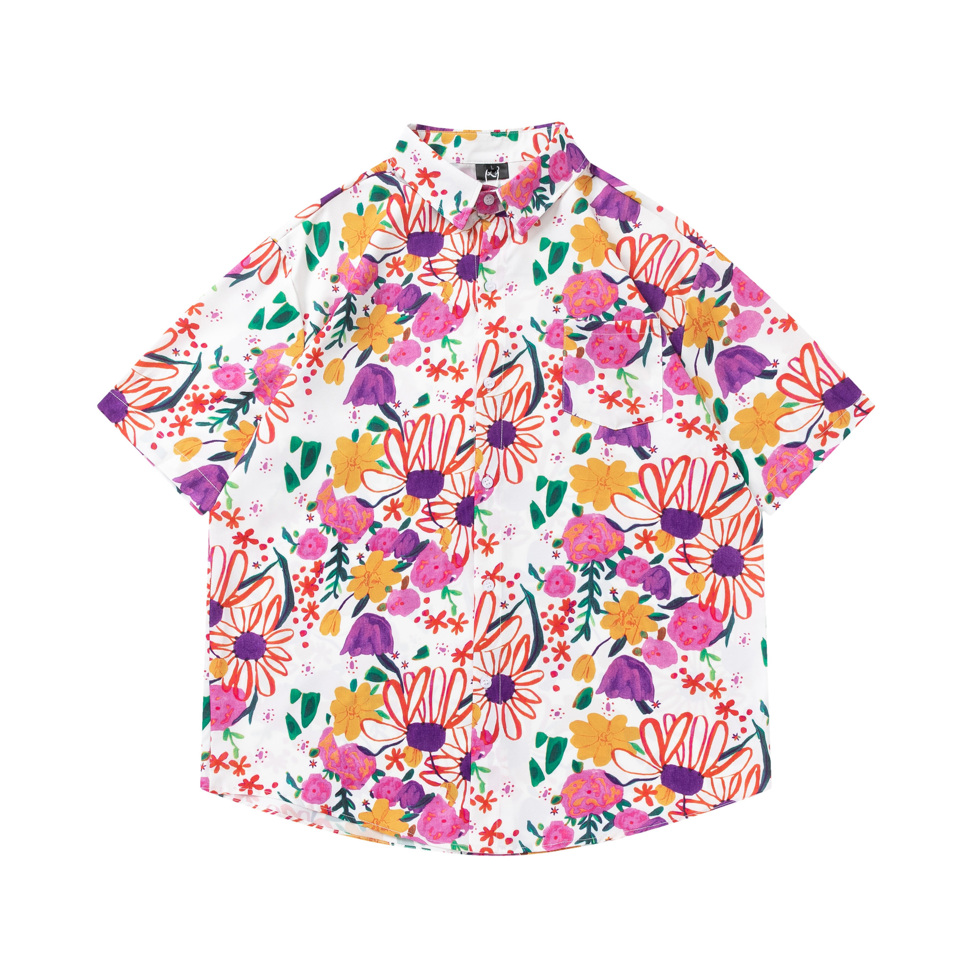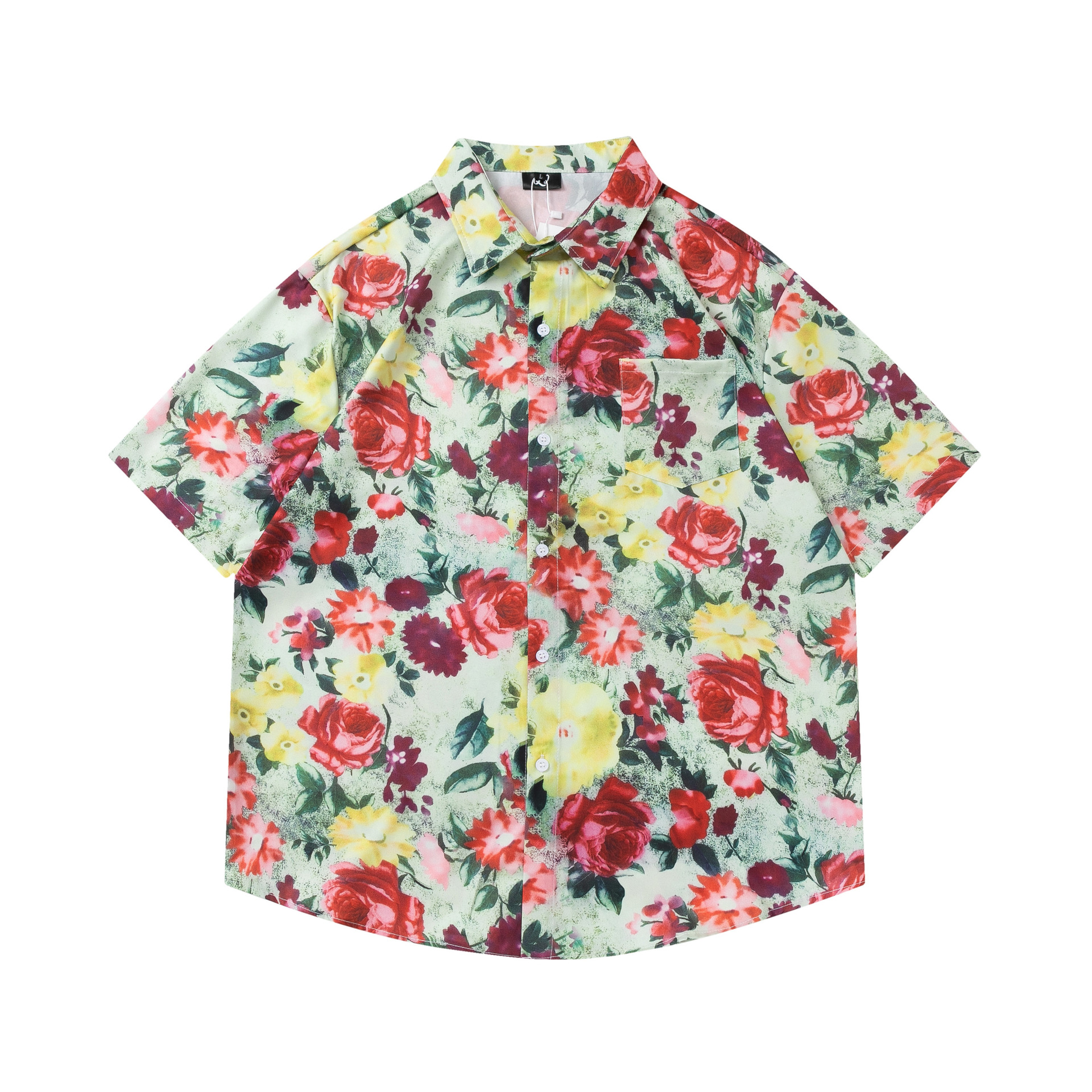 여름 빈티지 유화 플라워 셔츠 남성용 반팔 빈티지 셔츠 하와이안 느슨한 커플 코트 트렌디