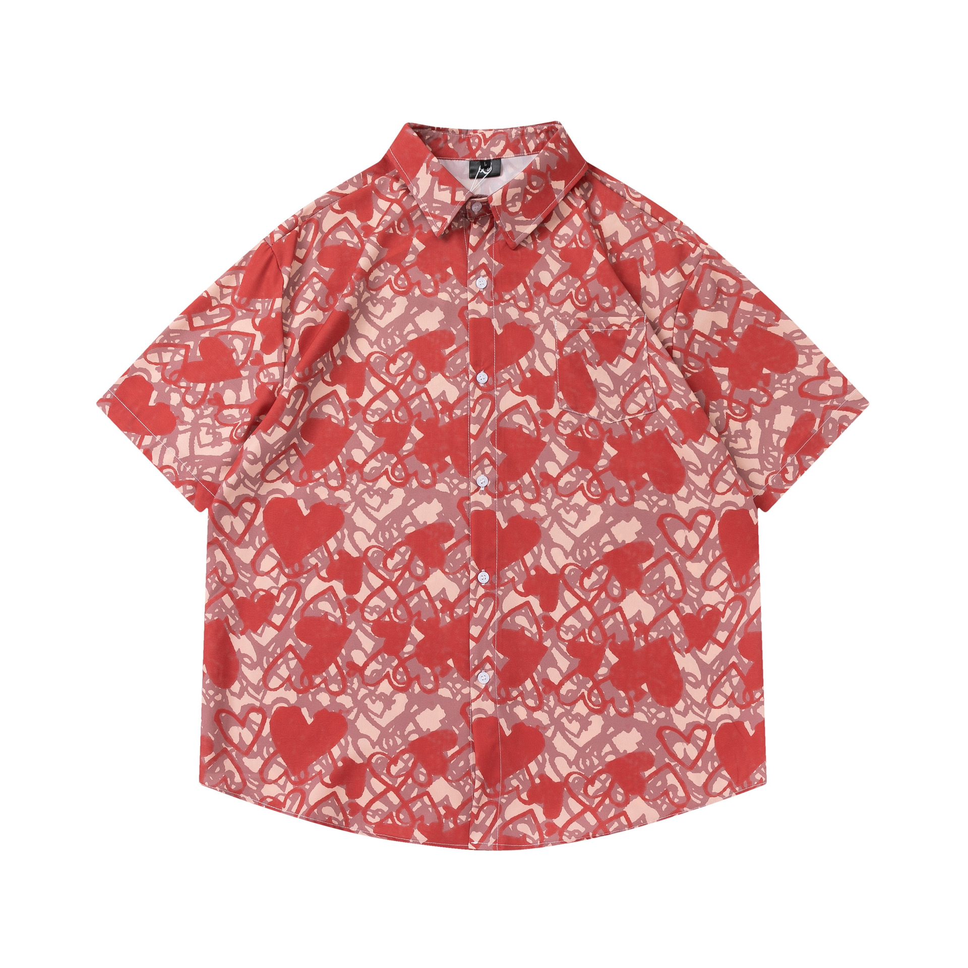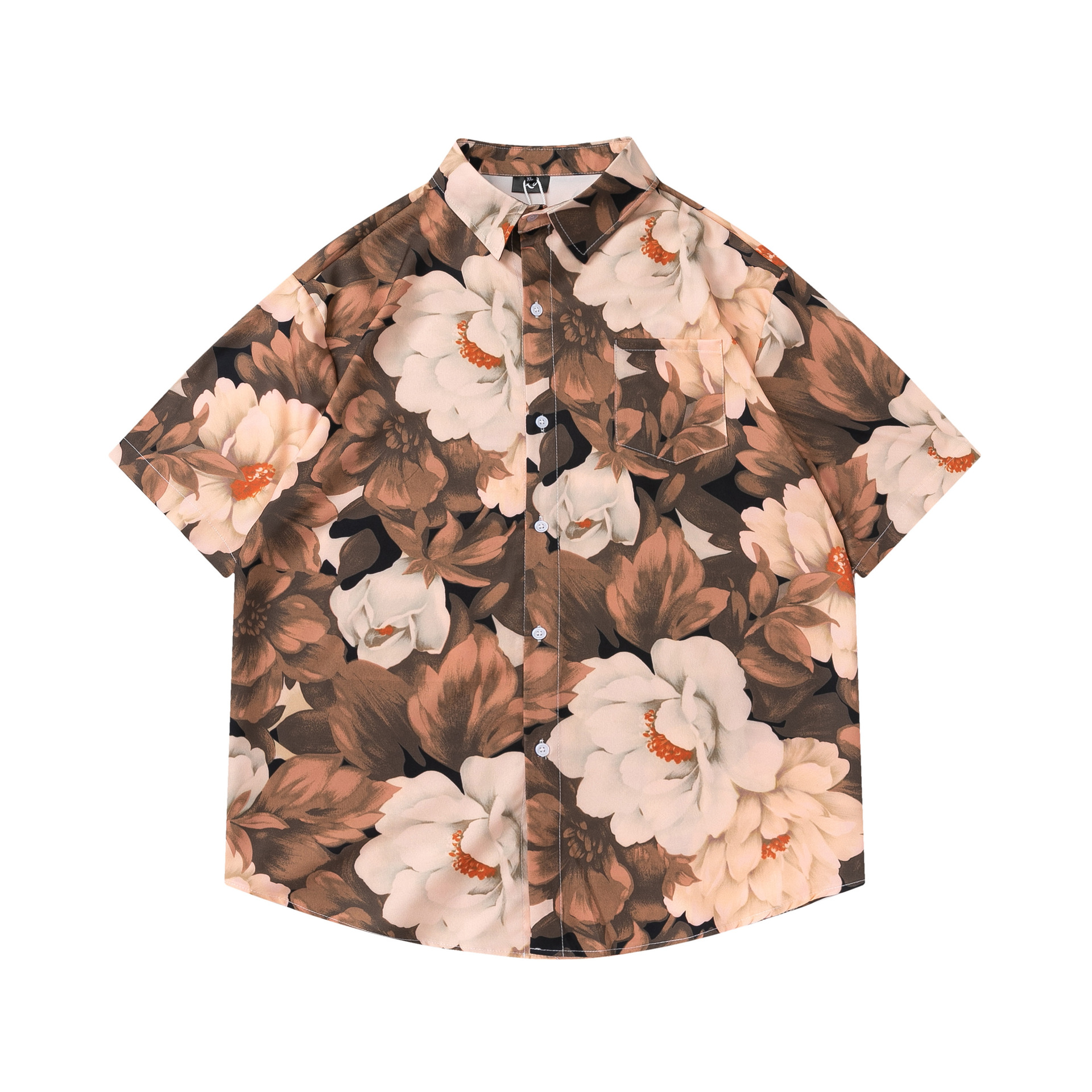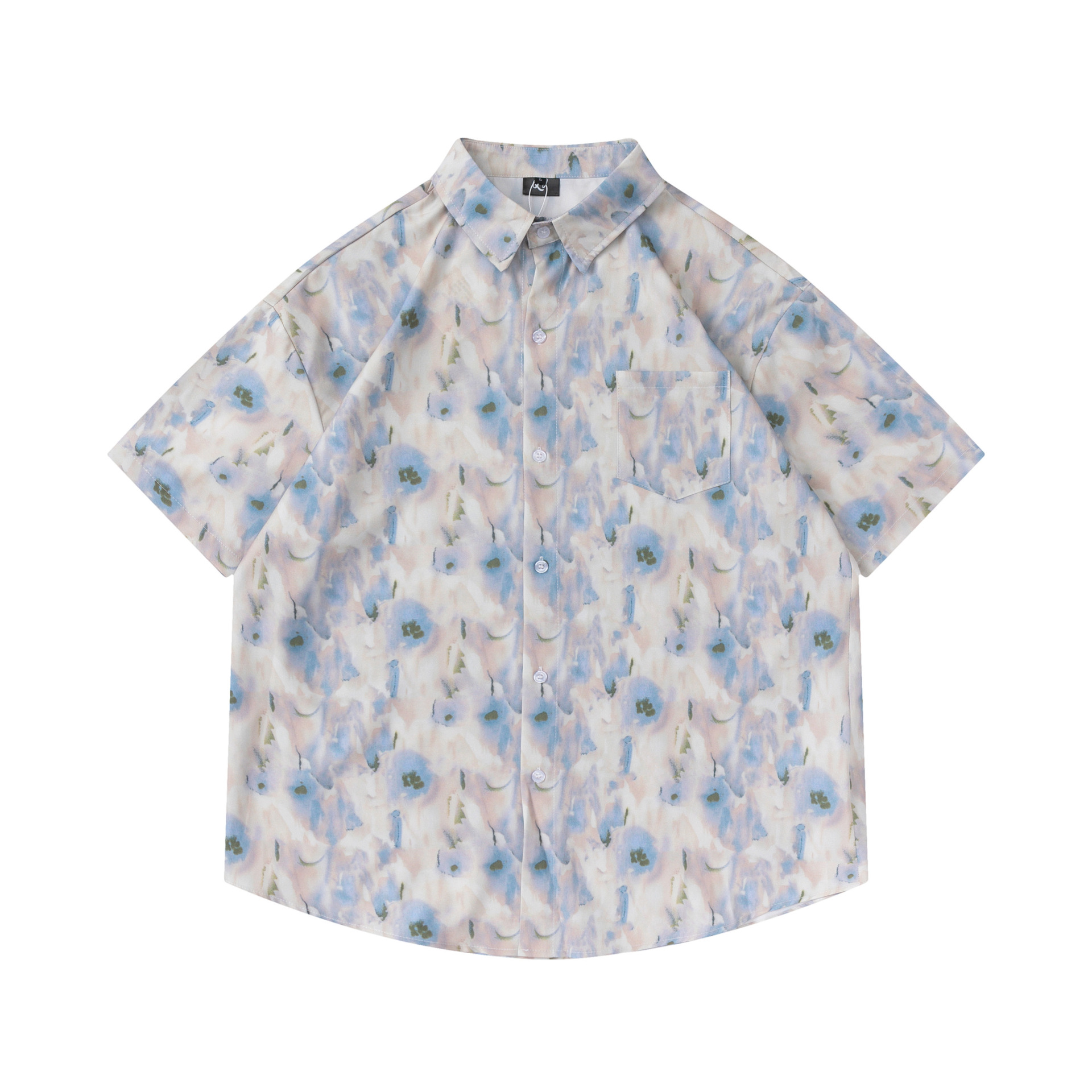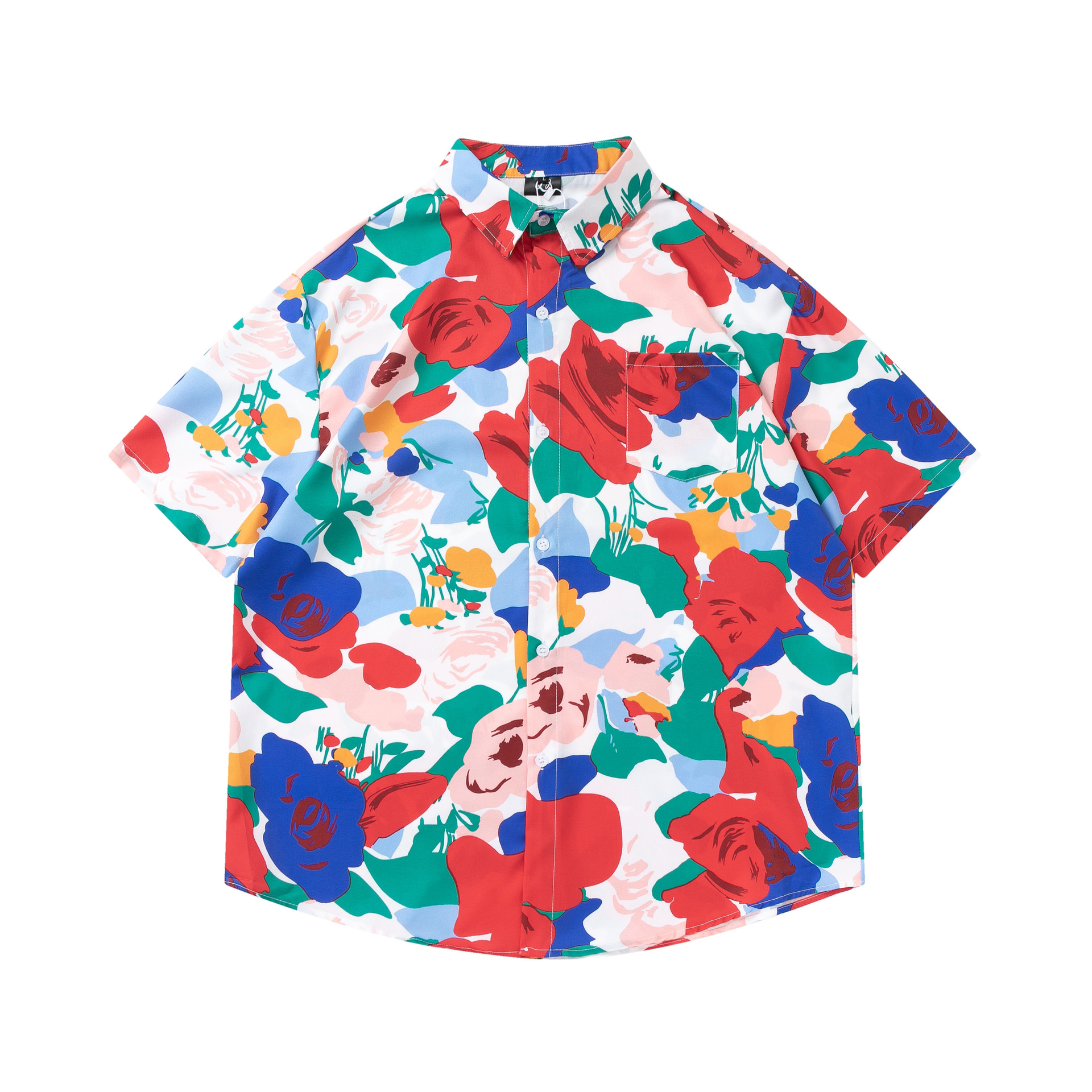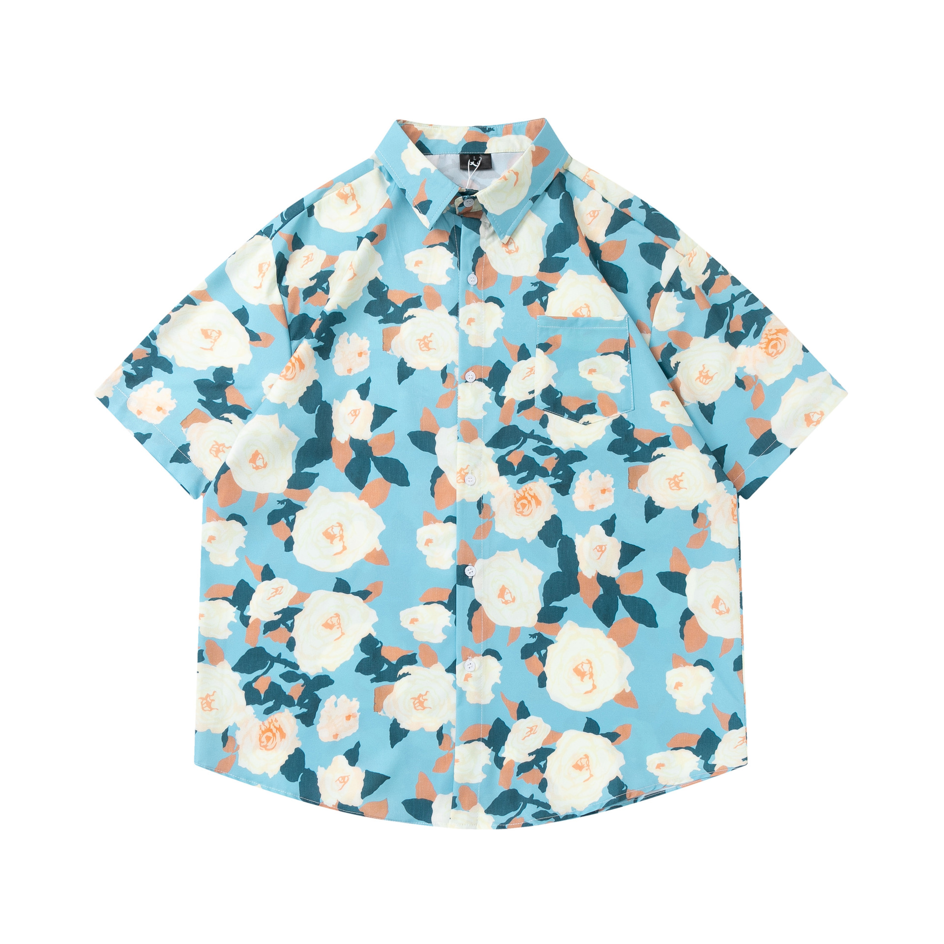 여름 빈티지 유화 플라워 셔츠 남성용 반팔 빈티지 셔츠 하와이안 느슨한 커플 코트 트렌디
