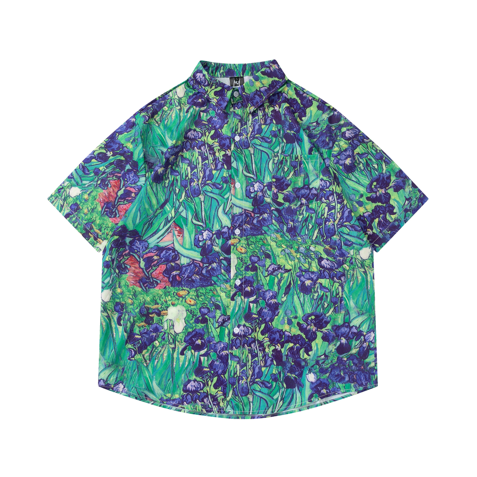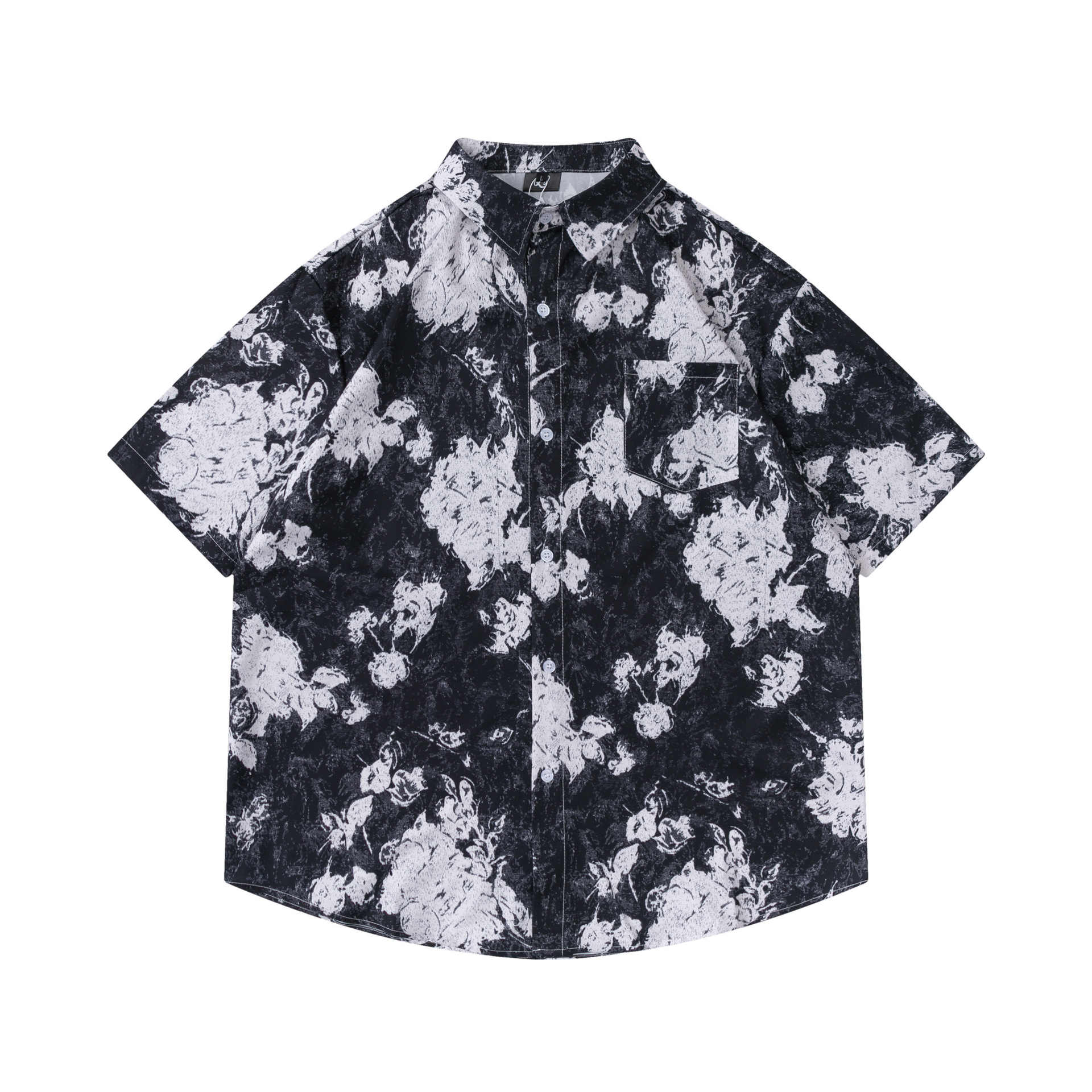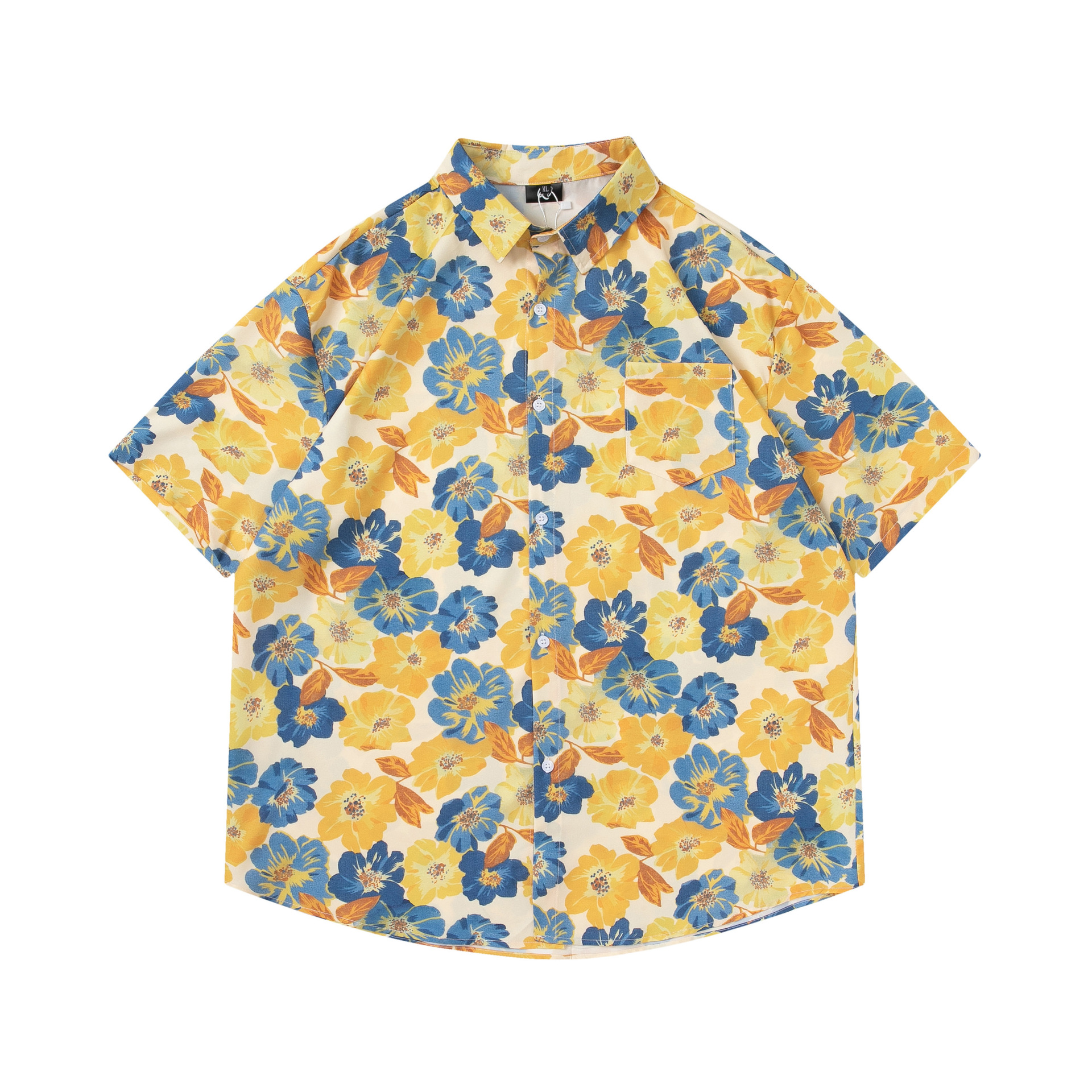 여름 빈티지 유화 플라워 셔츠 남성용 반팔 빈티지 셔츠 하와이안 느슨한 커플 코트 트렌디스토어 가기