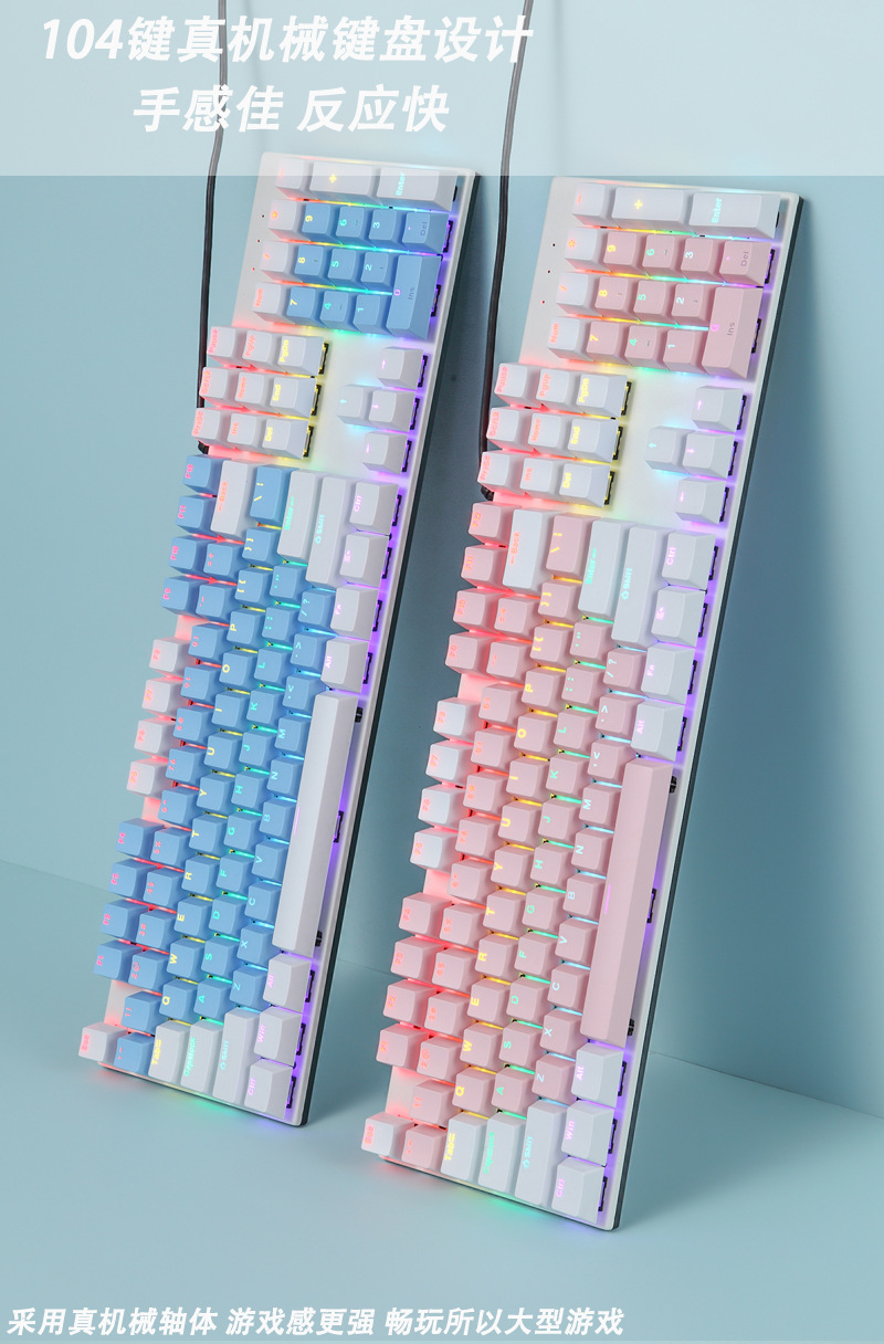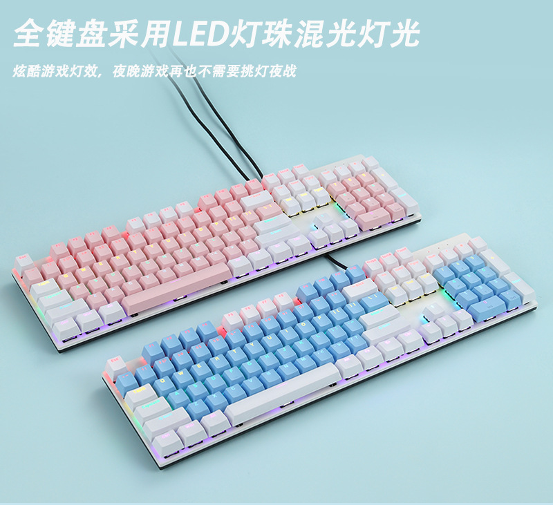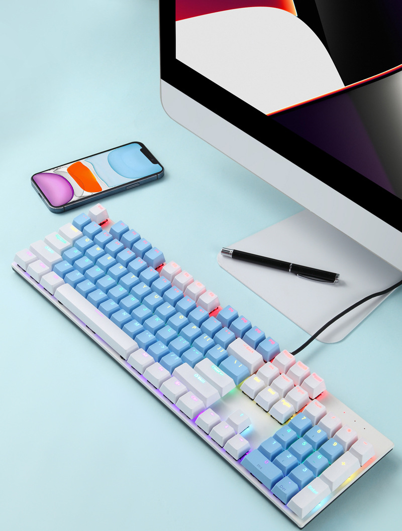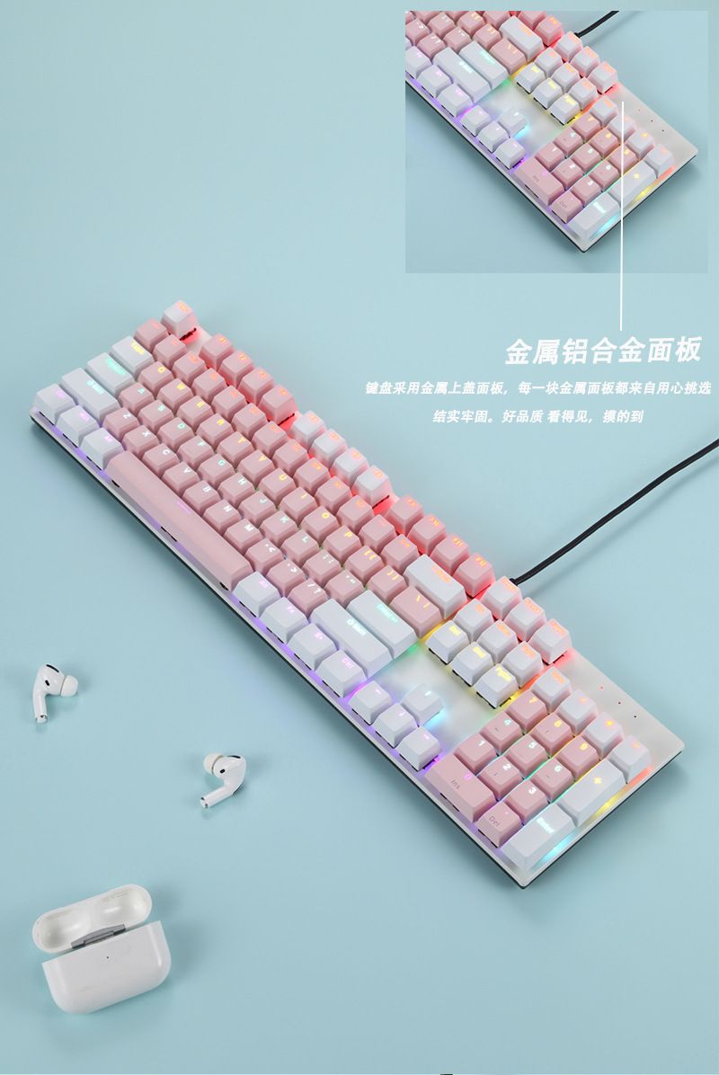 크로스보더 스팟 K135 메탈 패널 기계식 키보드 104키 혼합 색상 발광 e스포츠 게임용 키보드 소량