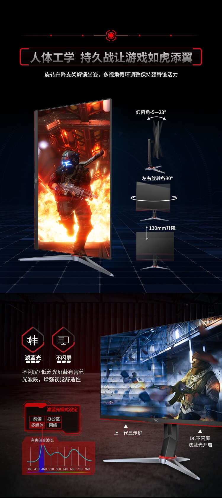 AOC 27 "2K IPS 와이드 컬러 Gamut 155Hz 1ms 응답 10 억 7 천만 컬러 HDR 모드