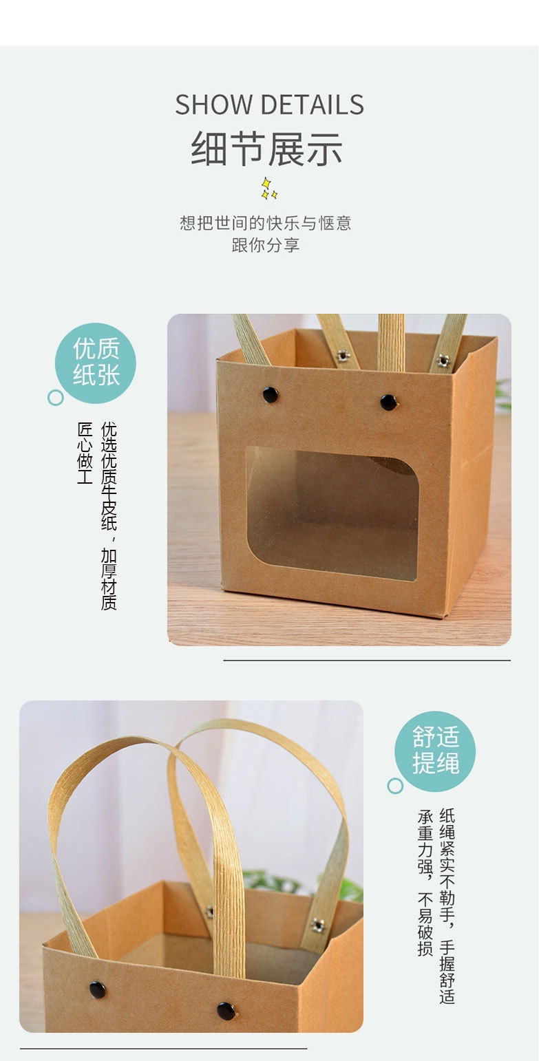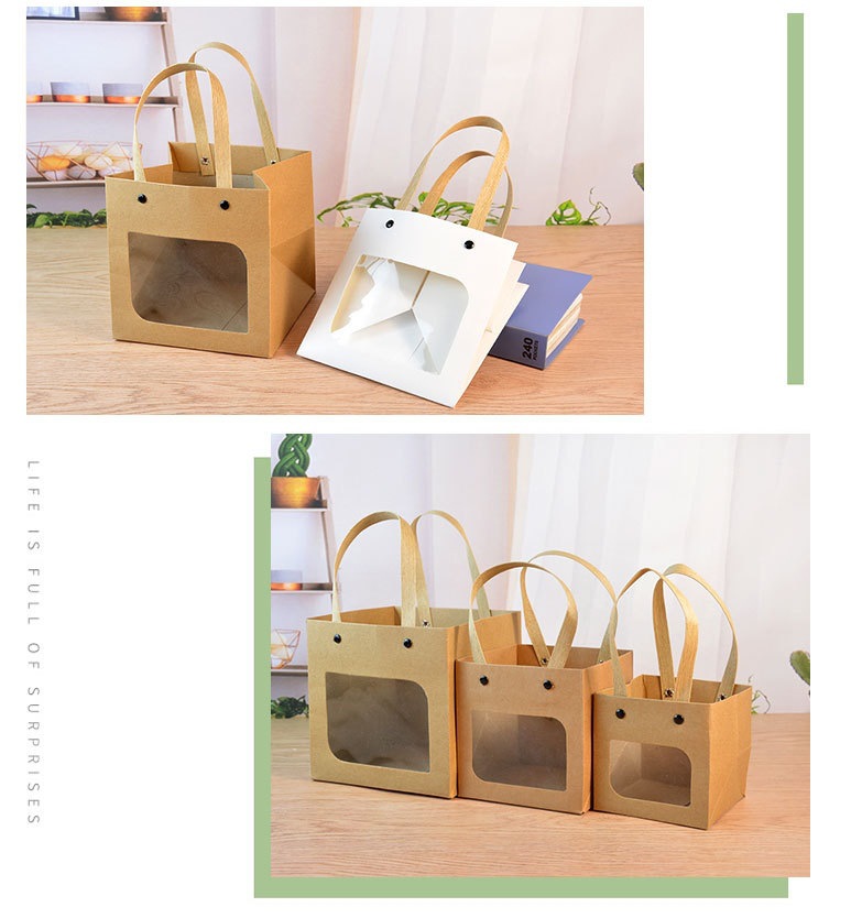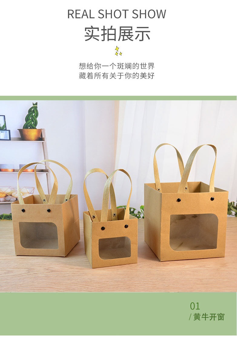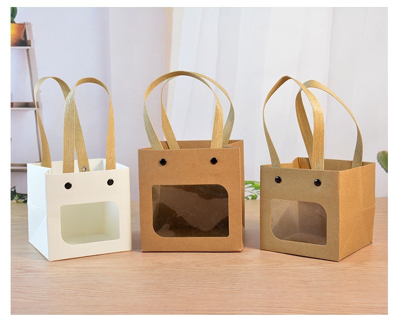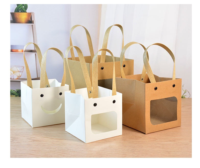 인터넷 연예인 스마일 크래프트 종이 핸드백 사각 창 열기 선물 가방 스몰 사이즈 Tanabata 꽃 선물 포장 가방스토어 가기