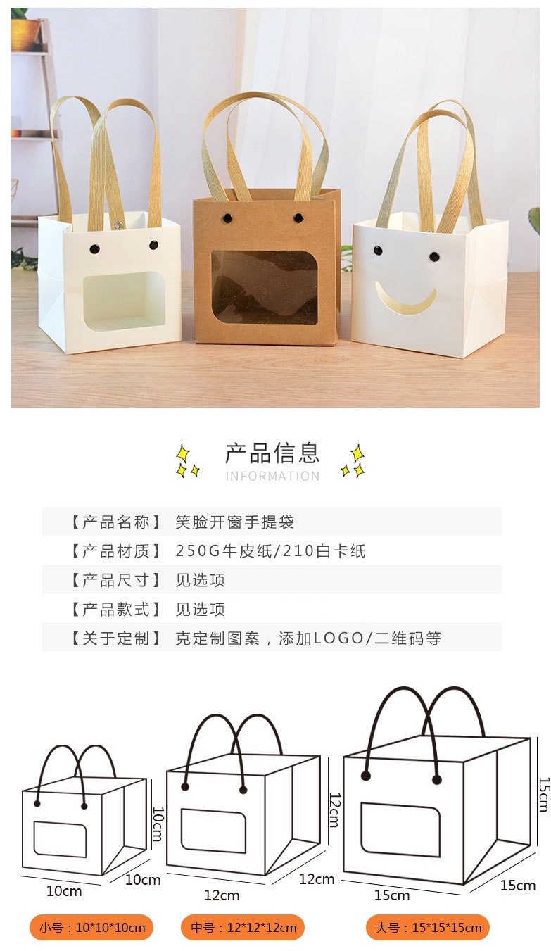 인터넷 연예인 스마일 크래프트 종이 핸드백 사각 창 열기 선물 가방 스몰 사이즈 Tanabata 꽃 선물 포장 가방