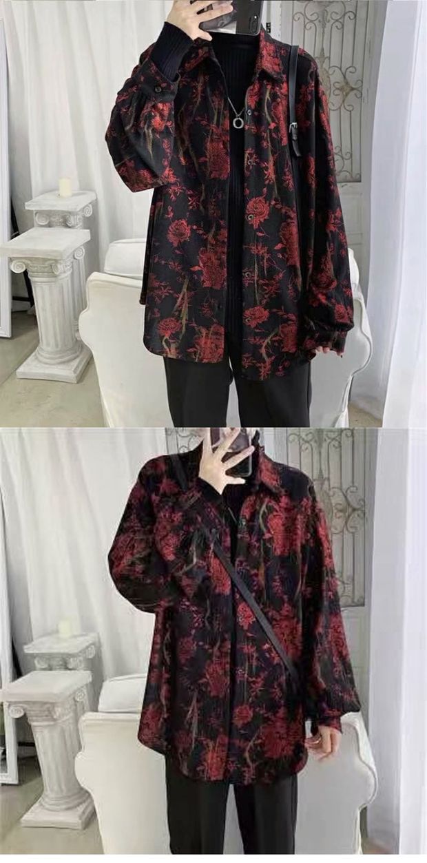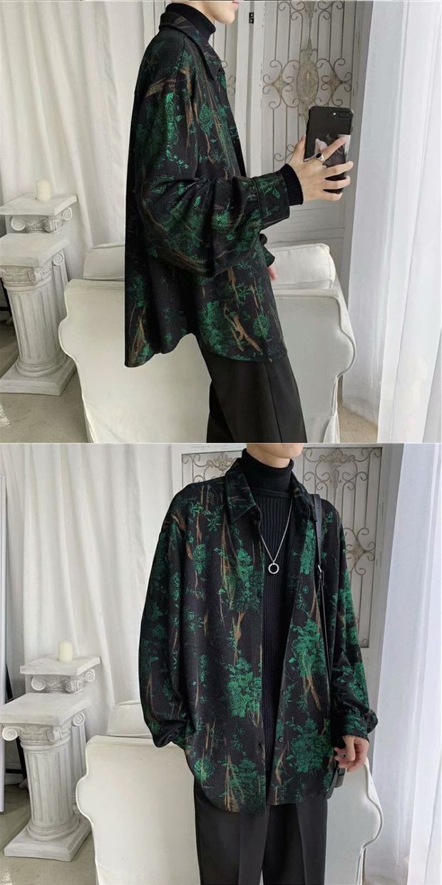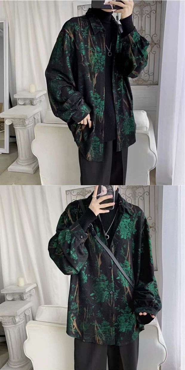 루즈한 긴팔 시크 레트로 추상 프린트 셔츠 재킷 틈새 나이트클럽 대외 무역 인터넷 연예인 남성용 셔츠스토어 가기