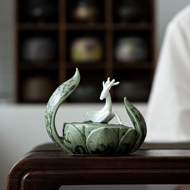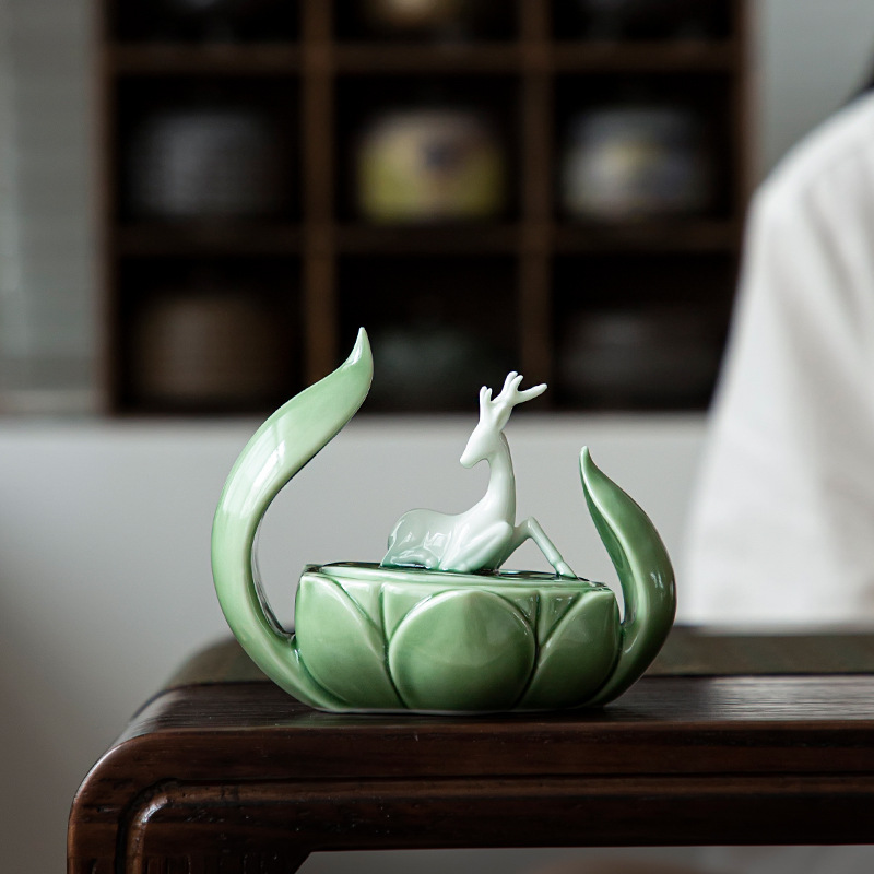 Yilu Liansheng 로터스 캠핑 스몰 사이즈 녹색 중국 스타일 티베트어 스타일 백단향 홈 향 세라믹 공예스토어 가기