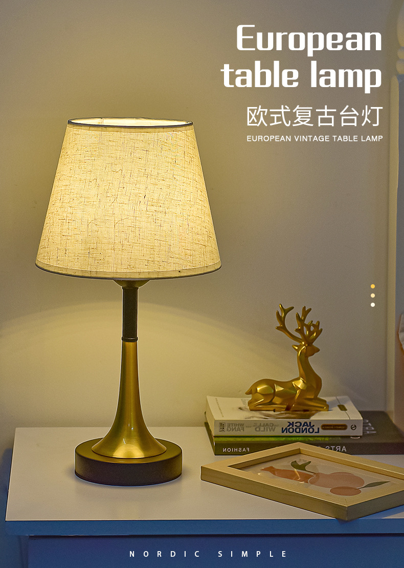 유럽식 레트로 테이블 램프 하이 엔드 침실 램프 침실 램프 기숙사 책상 연구 빛 고급 미국 테이블 램프 북유럽 크리에이티브
