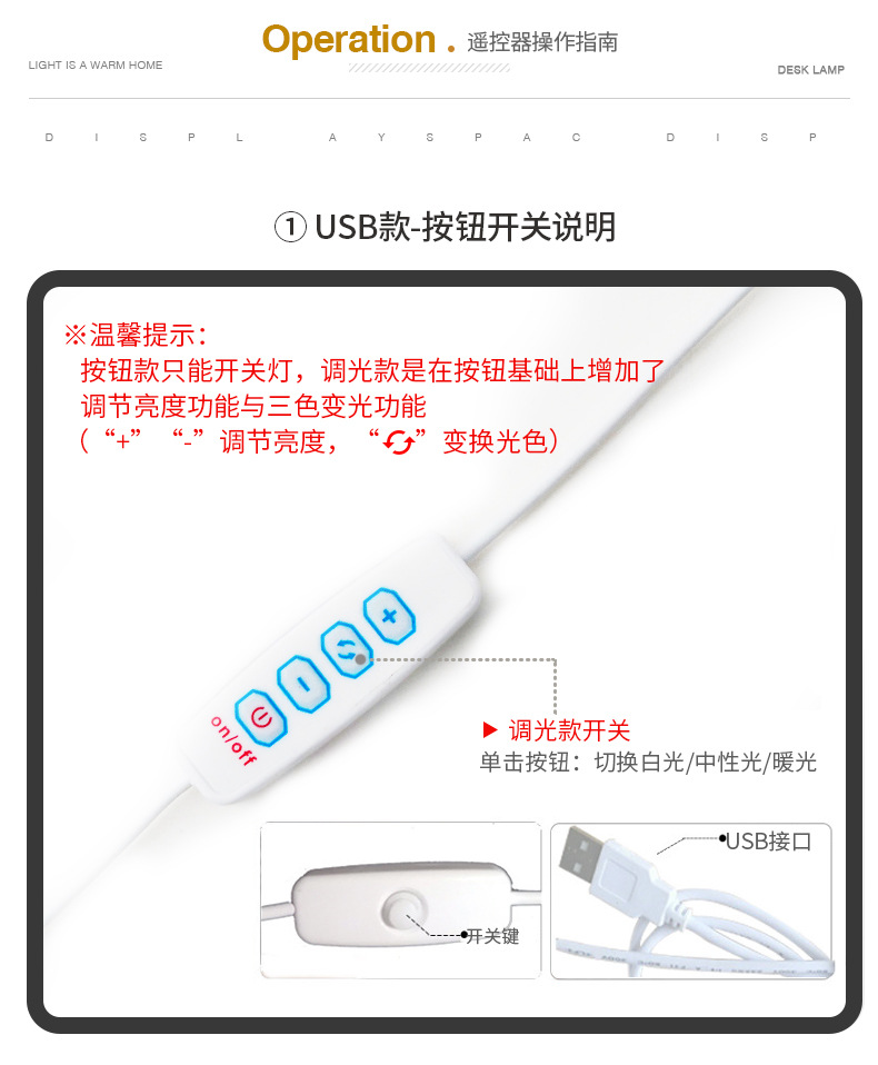 • 3W [3 색] USB 원격 디밍 + 타이밍 오프 라이트