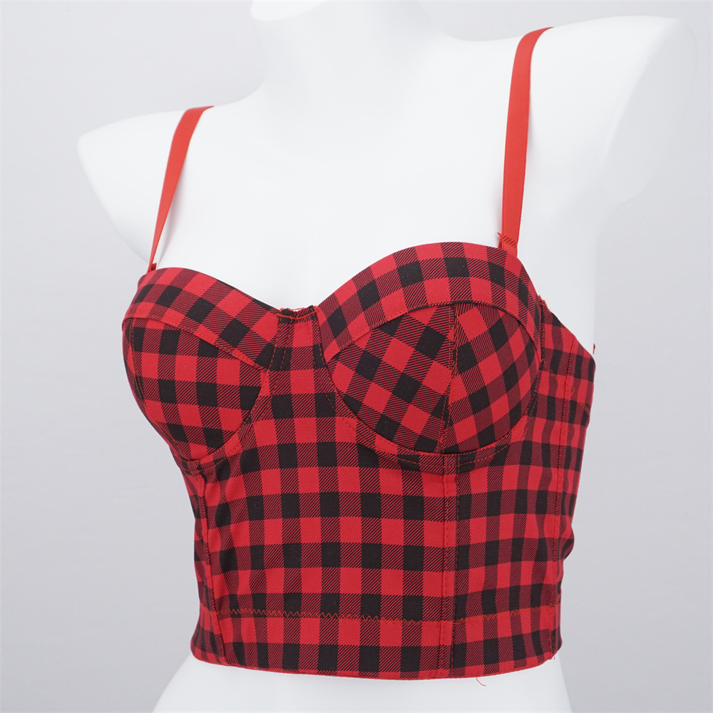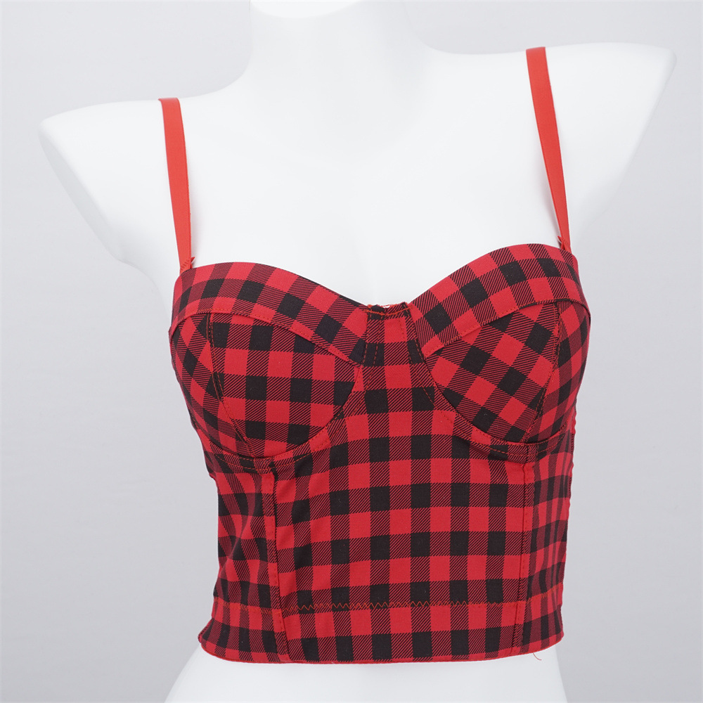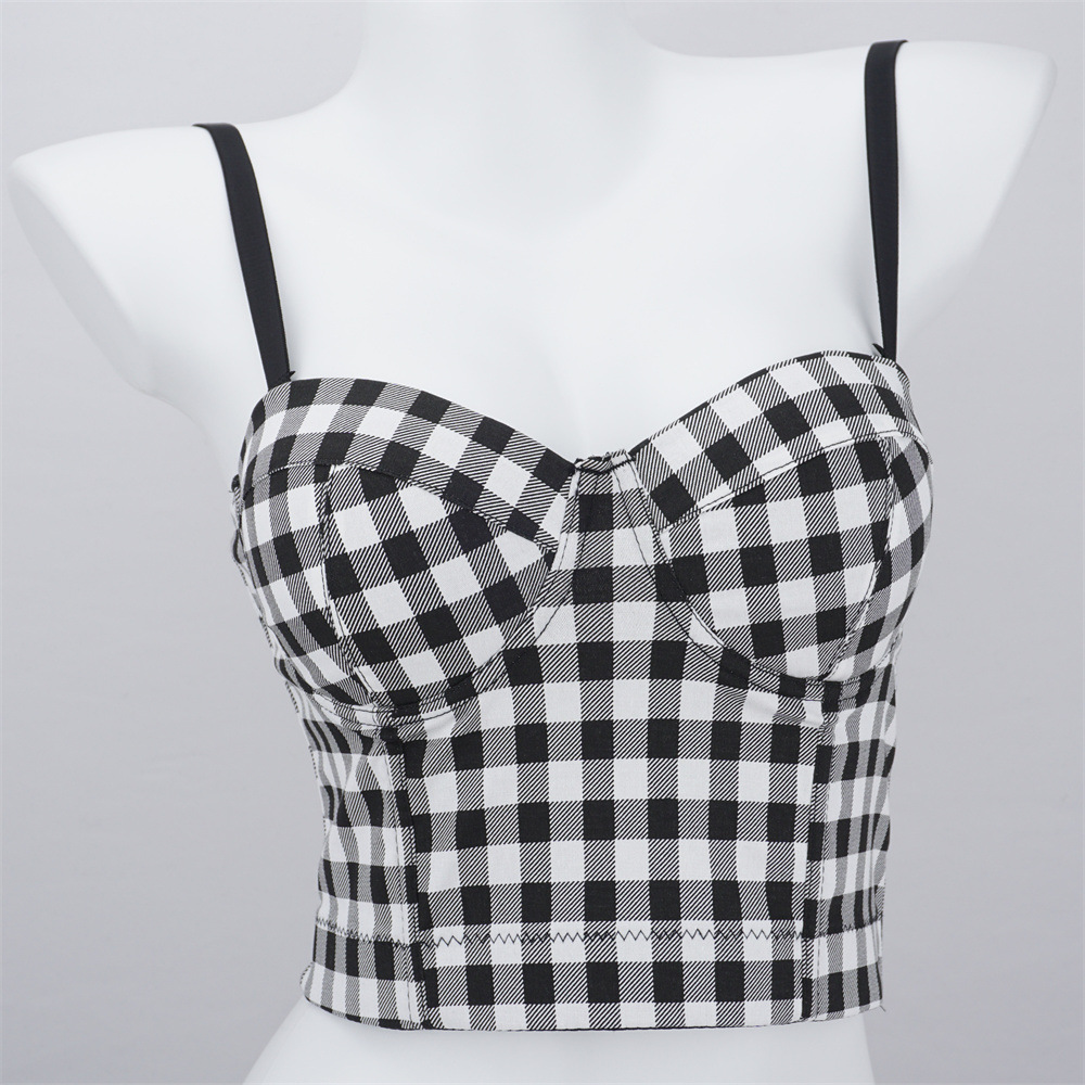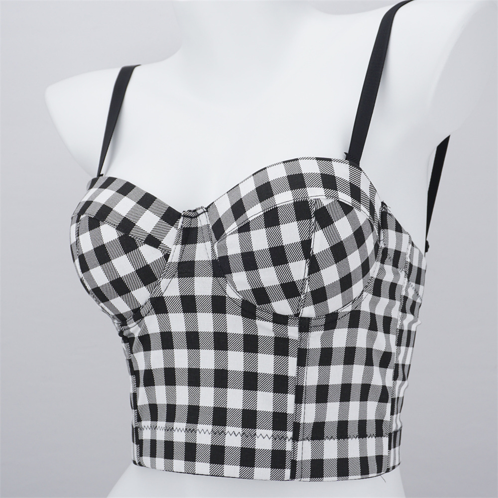미화 유럽풍 체크무늬 슬립탑 외출용 숏탑 크롭탑 풀컵 푸쉬업 뷔스티에 여성용