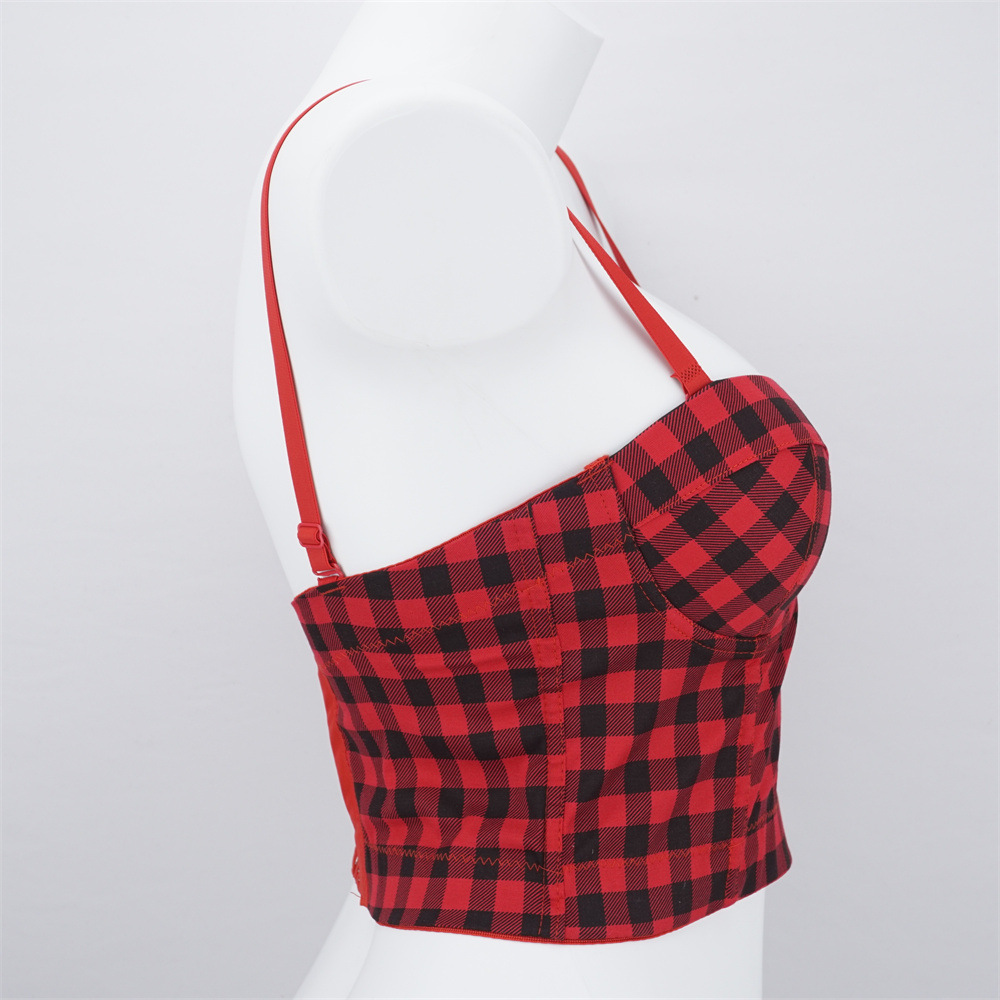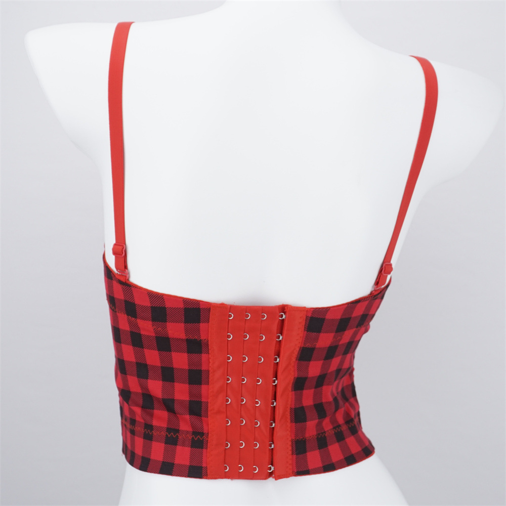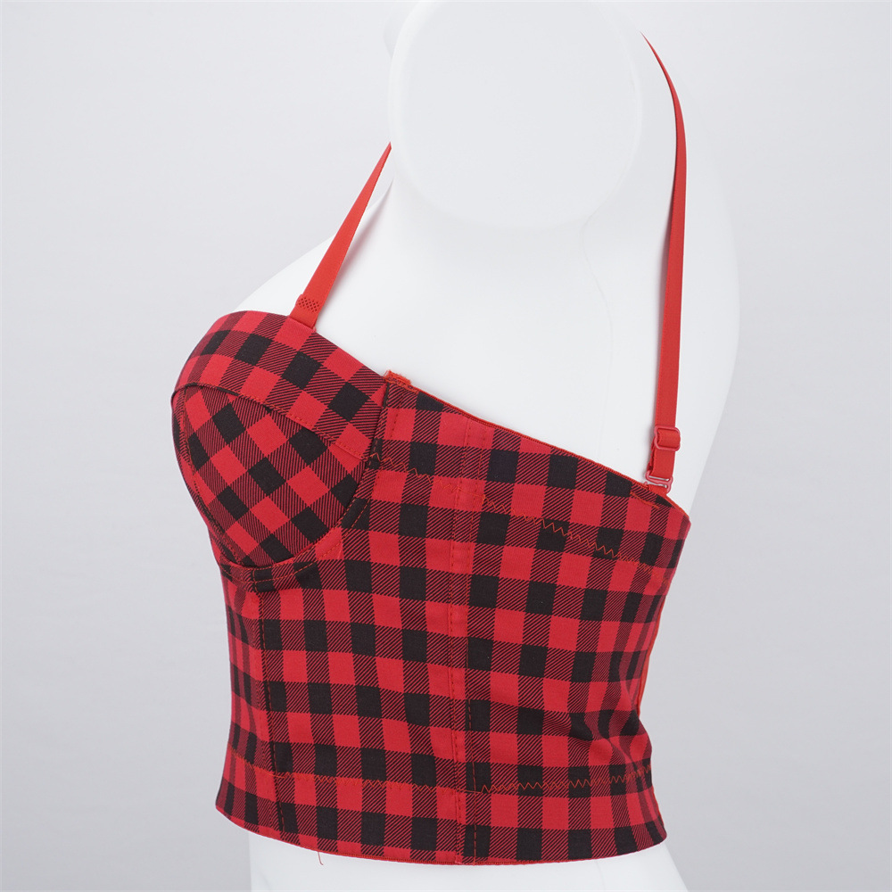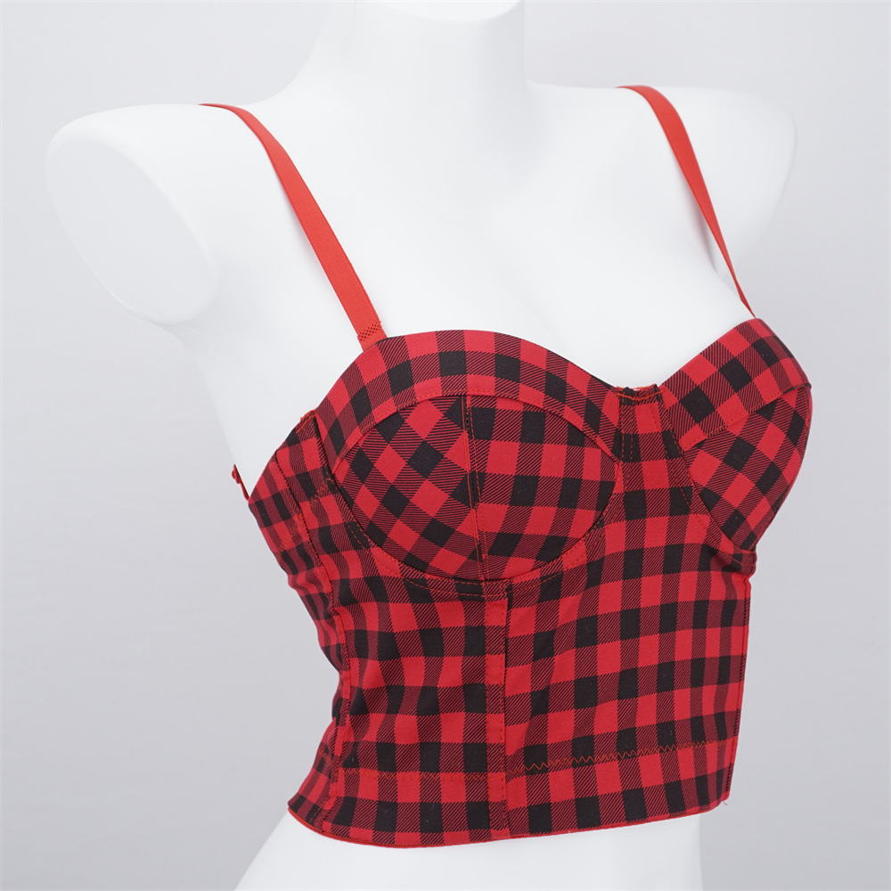 미화 유럽풍 체크무늬 슬립탑 외출용 숏탑 크롭탑 풀컵 푸쉬업 뷔스티에 여성용