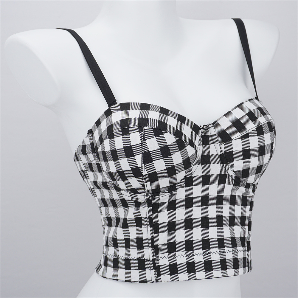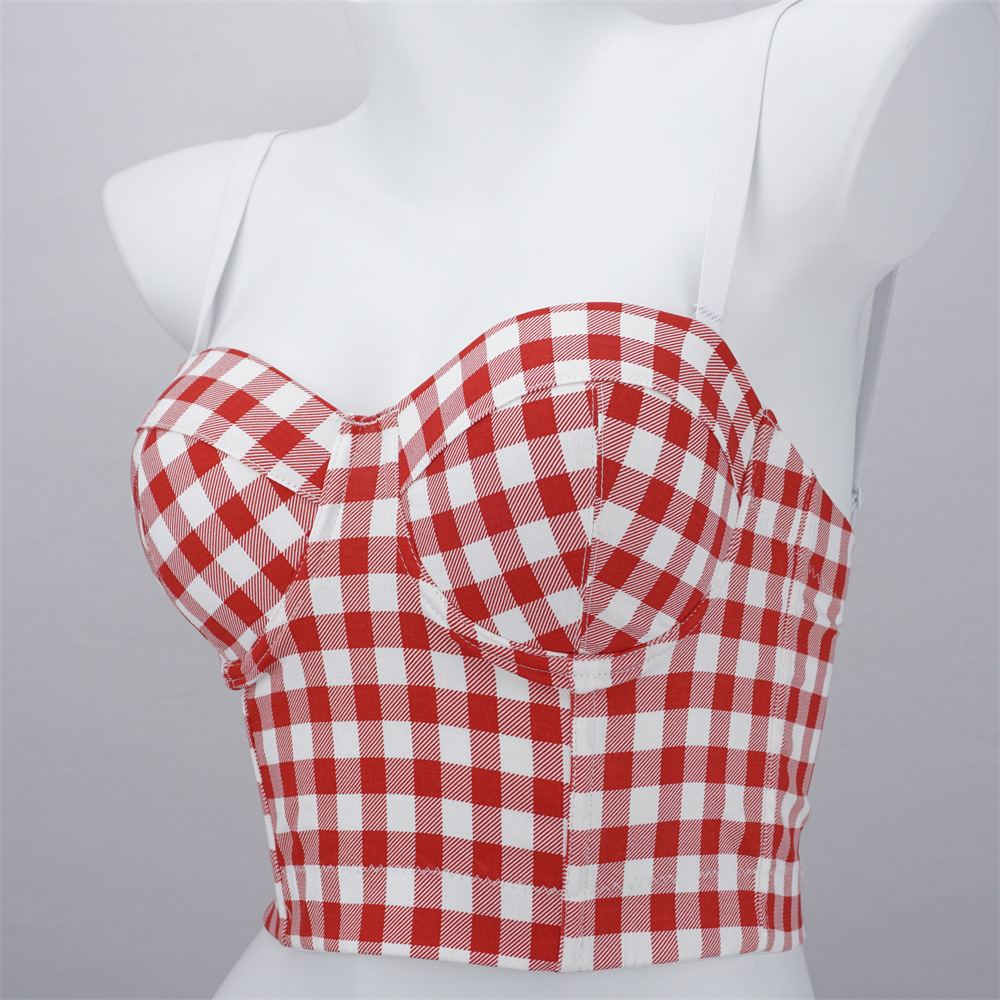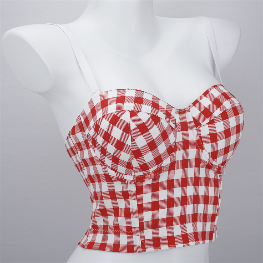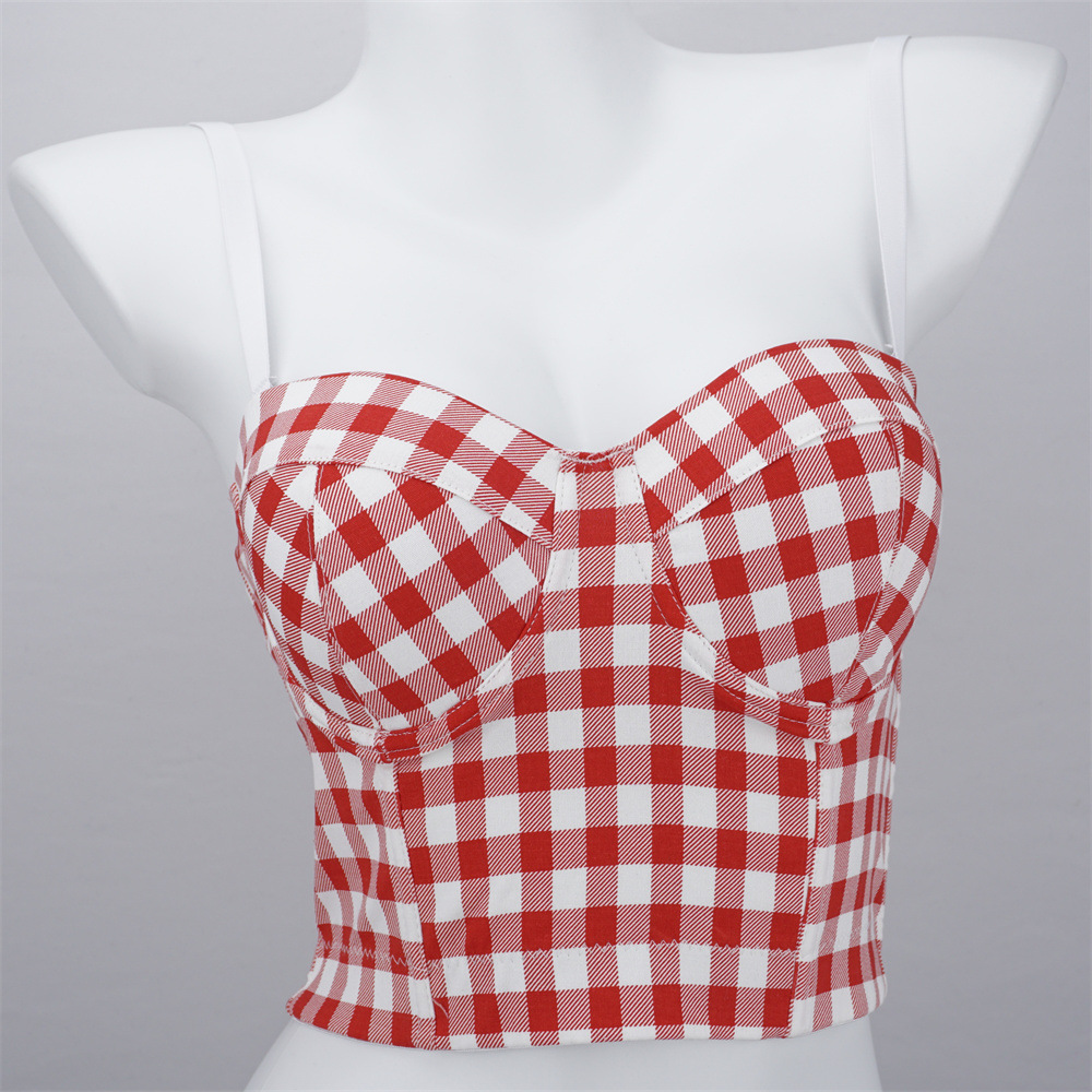 미화 유럽풍 체크무늬 슬립탑 외출용 숏탑 크롭탑 풀컵 푸쉬업 뷔스티에 여성용스토어 가기
