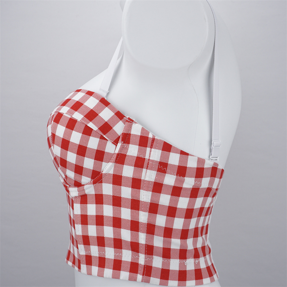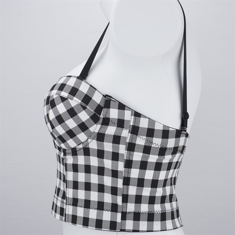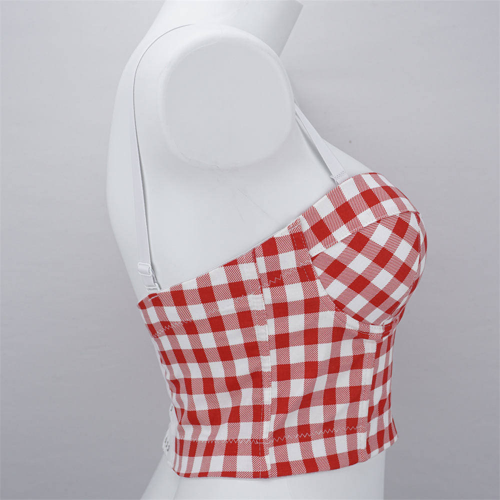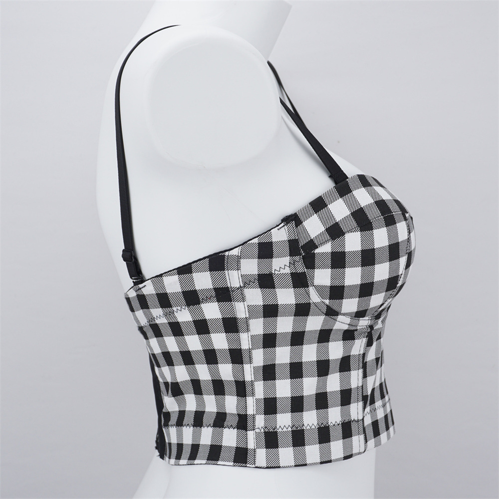 미화 유럽풍 체크무늬 슬립탑 외출용 숏탑 크롭탑 풀컵 푸쉬업 뷔스티에 여성용스토어 가기