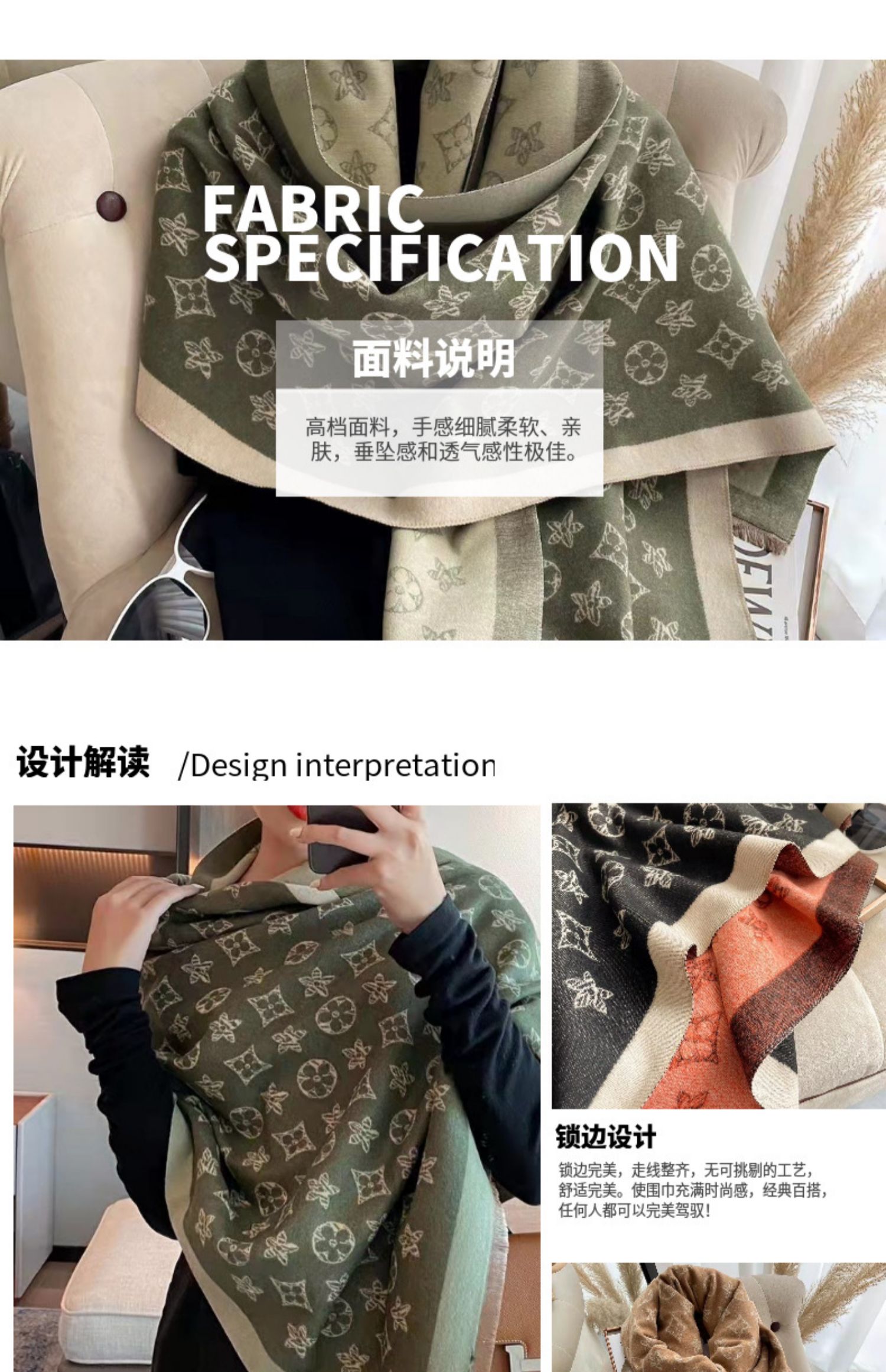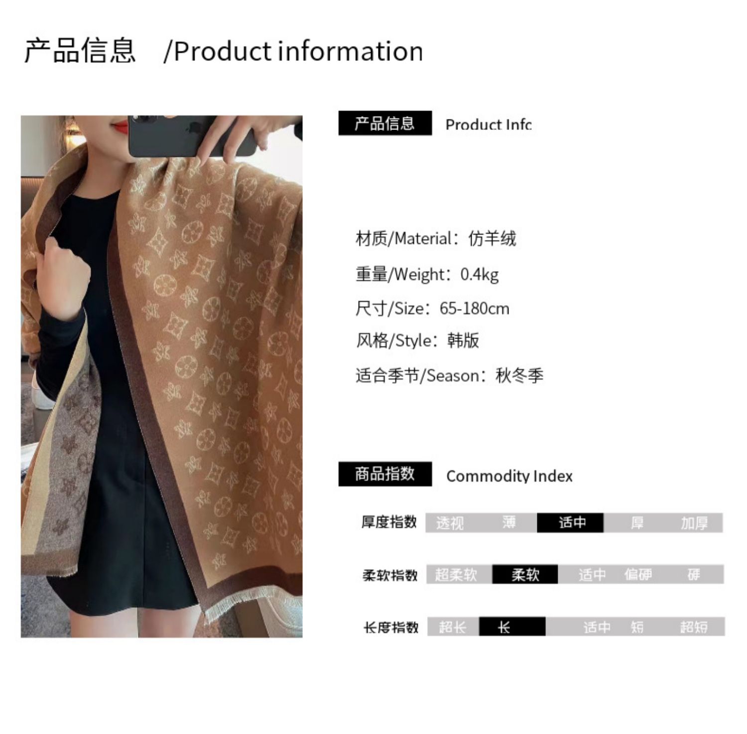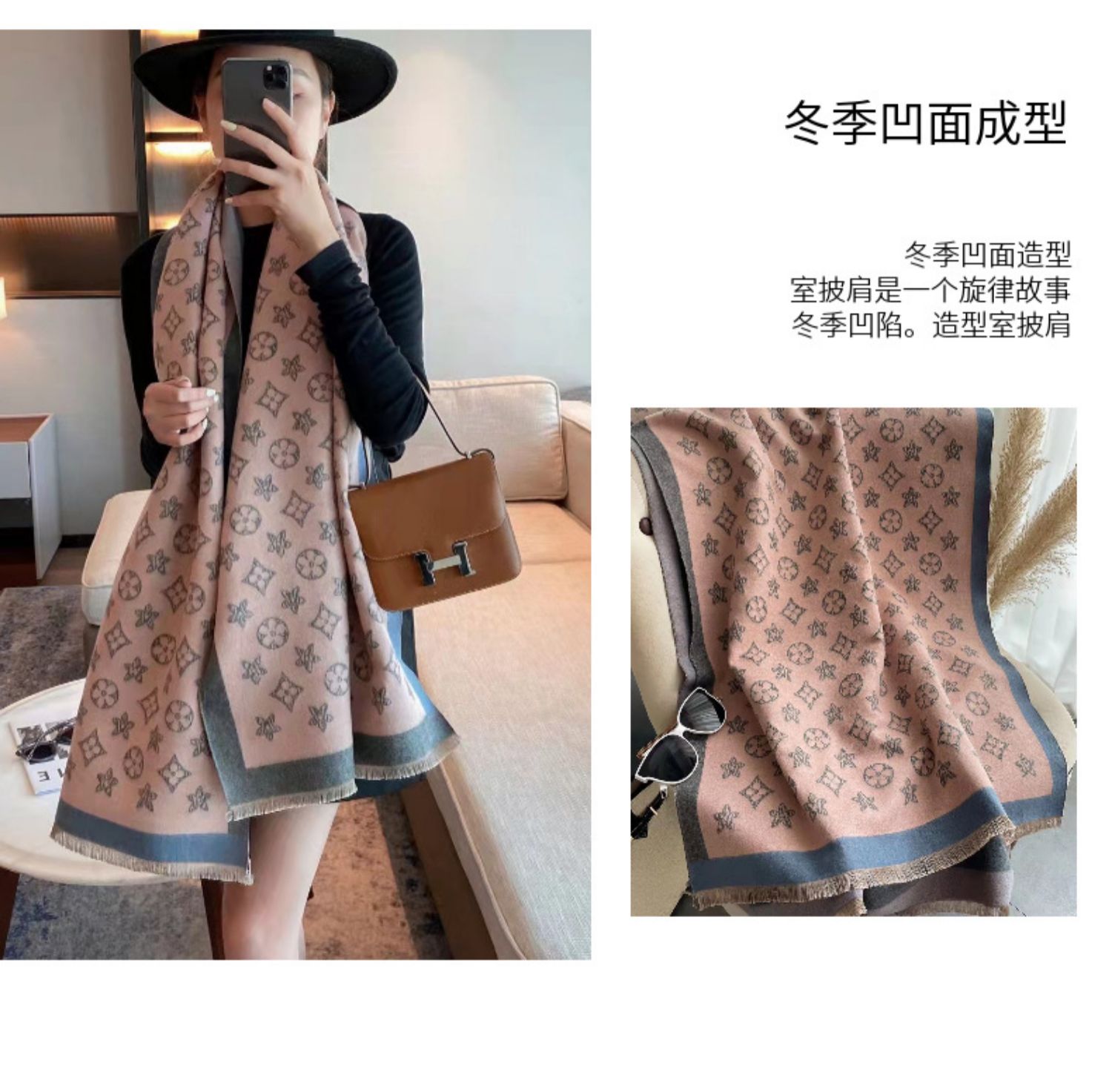2023 겨울 구미 모조 캐시미어 스카프 에어컨 방 긴 목도리 양면 따뜻한 라이브 스카프 도매스토어 가기