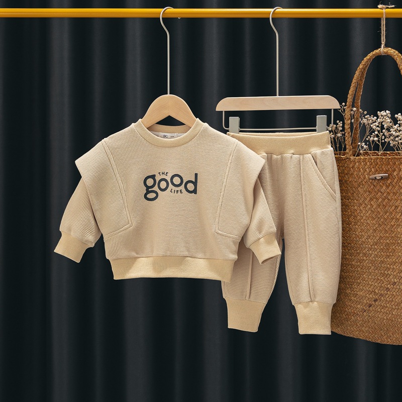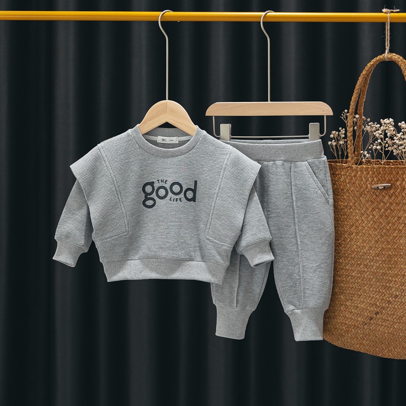 아기의 봄 옷 세트 새로운 남자의 아이들의 유행 잘 생긴 투피스 인터넷 연예인 거리 옷 봄과 가을 회색 어린이 옷스토어 가기