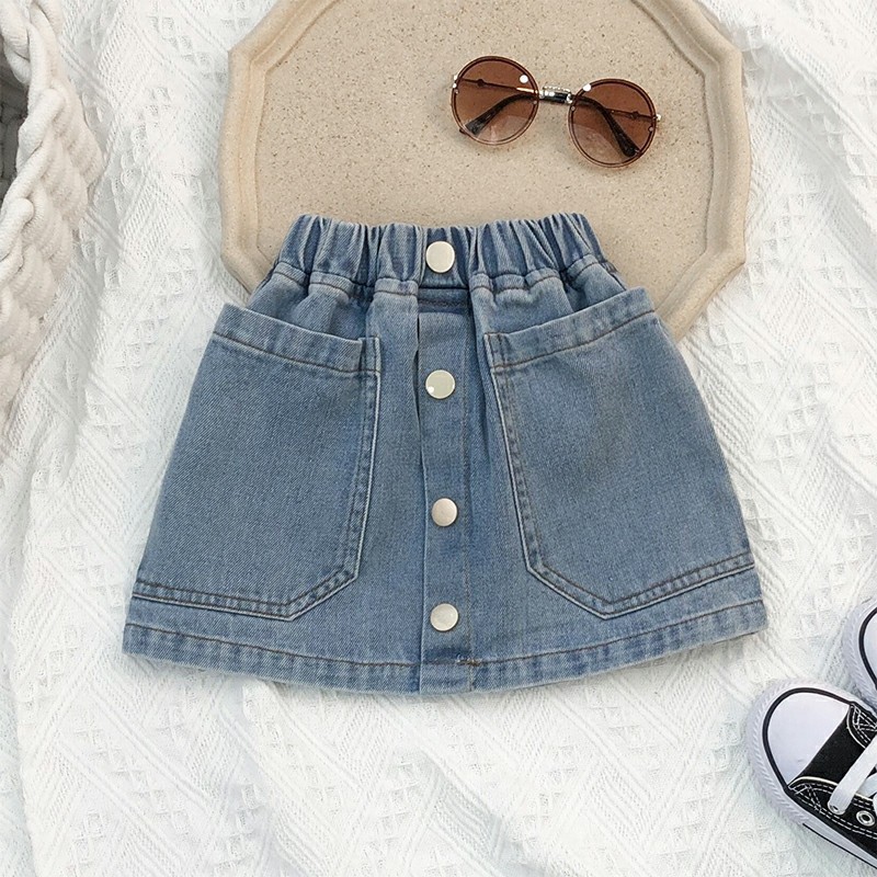 여름 여아 짧은 치마 아기 어린이 개성 트렌디 브랜드 한국 스타일 데님 스커트 공주 반바지 A라인 데님 스커트