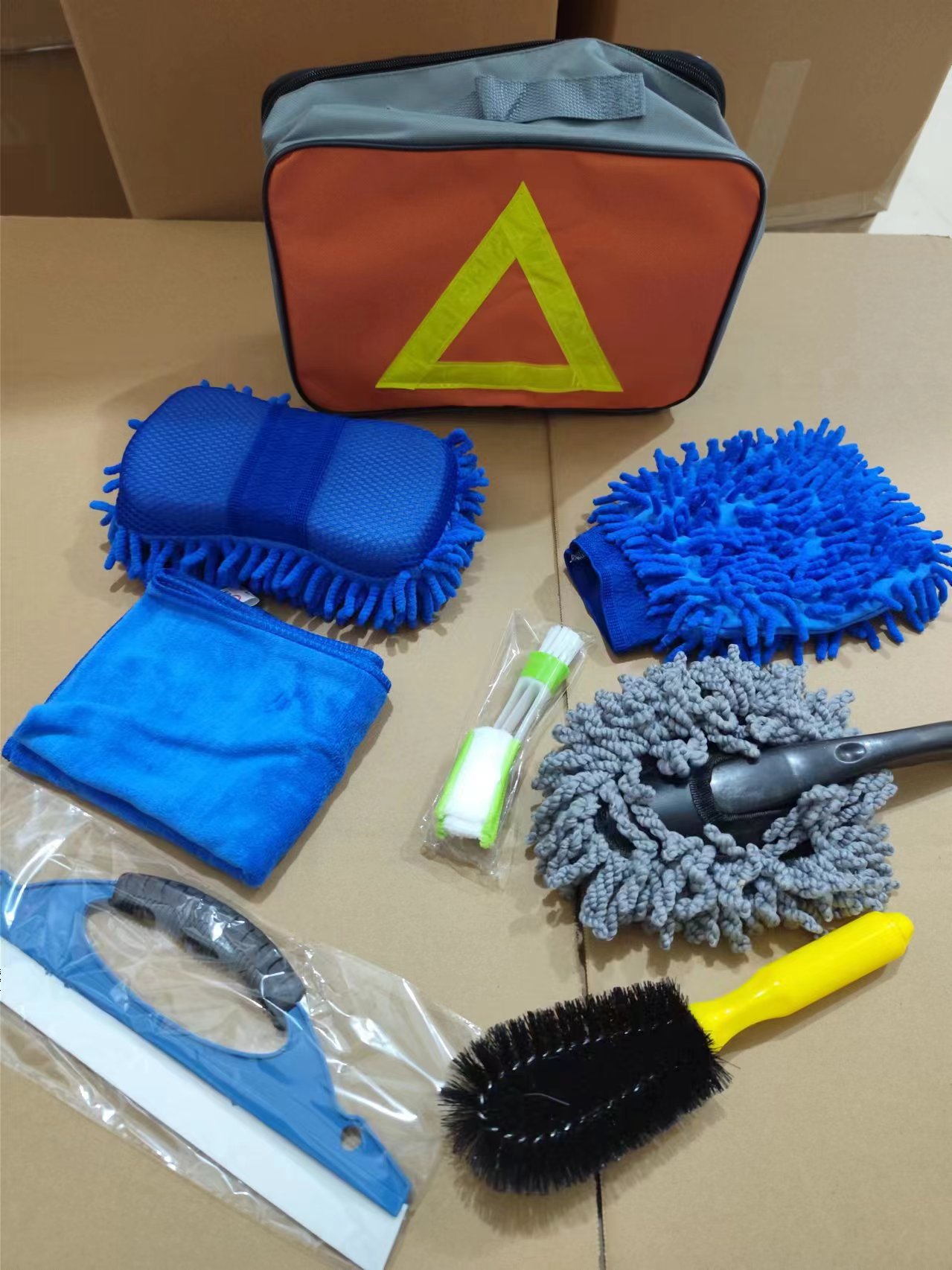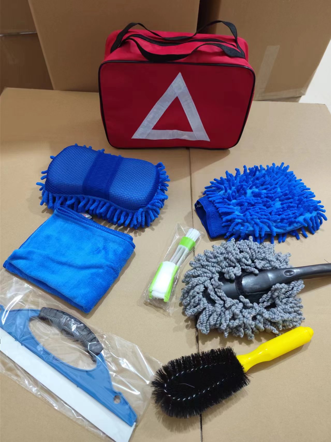 单个重量约:包/130g, 雪尼尔擦车块/130g,擦车毛巾/30g,轮胎刷/55g,小蜡刷/70g,缝隙刷/30g,硅胶刮水板/110g