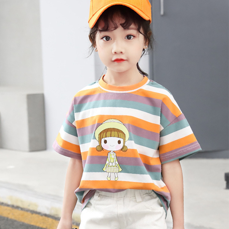 어린이 의류 소녀 여름면 바닥 셔츠 중대형 어린이 반팔 줄무늬 티셔츠 소녀 셔츠 유행 원피스 배달스토어 가기