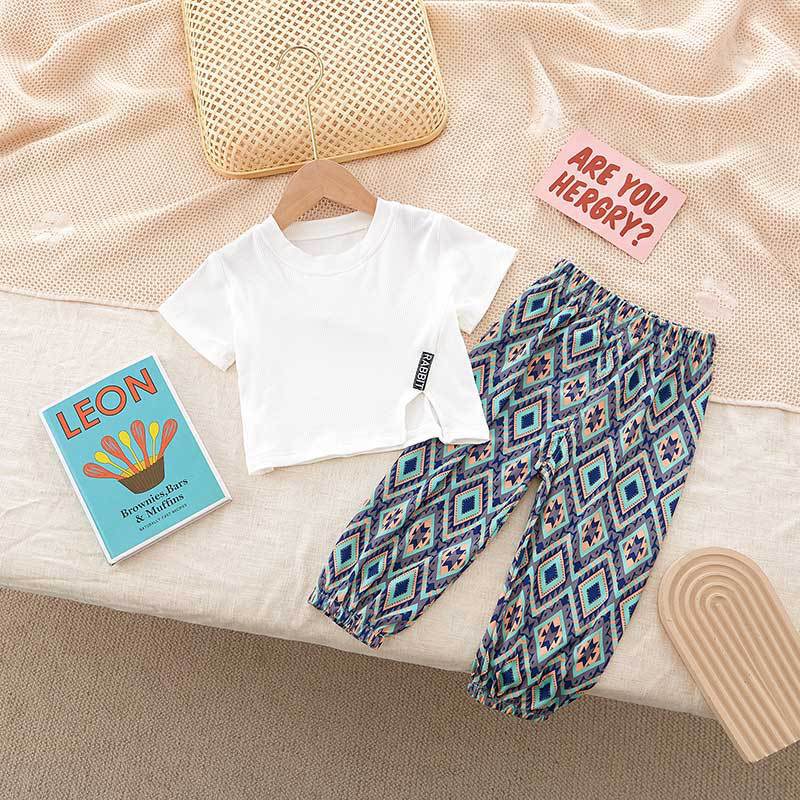어린이 여름 모기 방지 바지 여성 아기의 허리 길이 세트 소녀의 멋진 투피스 세트