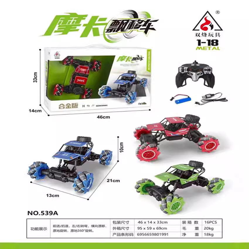 Shuangqi 539A 합금 모카 왼쪽과 오른쪽 드리프트 자동차 등반 자동차 1:18 충전 무선 원격 제어 자동차 장난감 모델스토어 가기