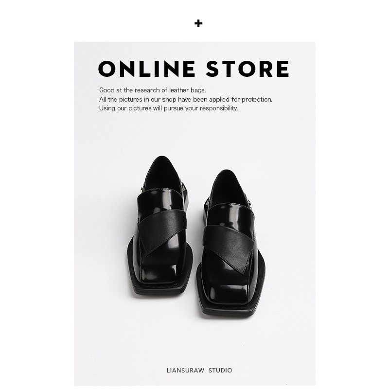가을 2022 새로운 작은 가죽 신발 여성용 두꺼운 굽 스퀘어 토 부드러운 가죽 스텝 온 레트로 브리티쉬 얕은 입 신발스토어 가기