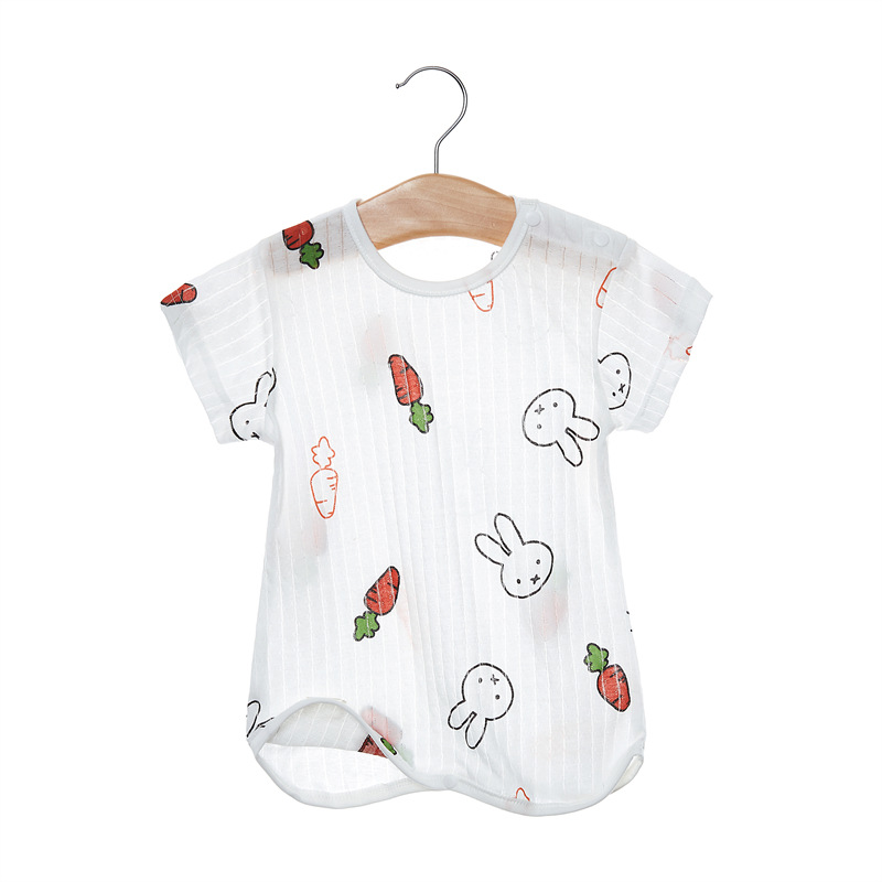 아기의 순면 잠옷 얇은 토끼 옷 어린이 잠옷 여름 아기 점프 수트 아기의 반팔 초박형 잠옷