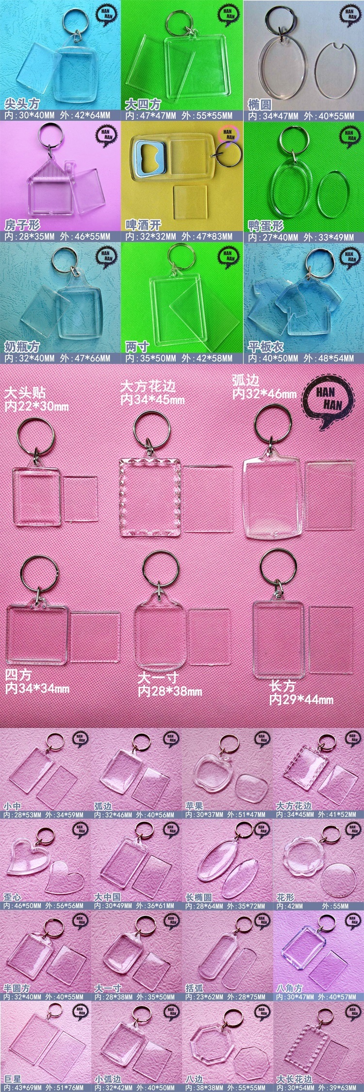 아크릴 투명 광고 병따개 2 인치 DIY 사진 프레임 빈 쉘 키 체인 플라스틱 키 체인스토어 가기