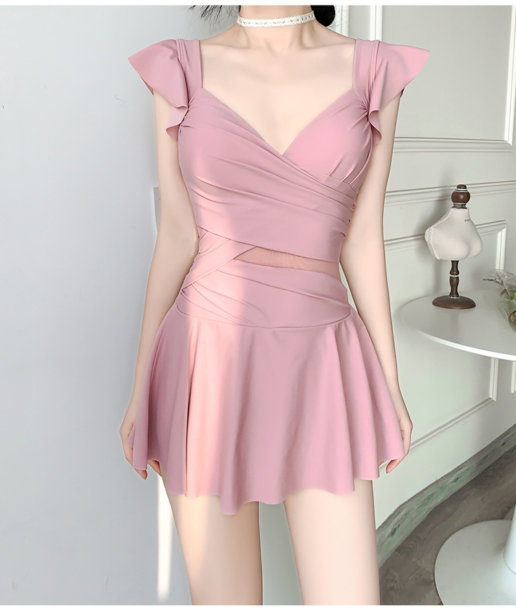 2025년 신형 여성 수영복, 배를 커버하고 날씬해 보이는 원피스 스커트 스타일의 언더와이어 푸쉬업 학생 보수적인 온천 수영복스토어 가기