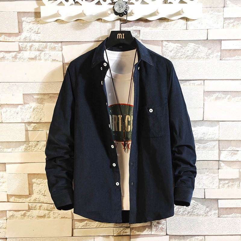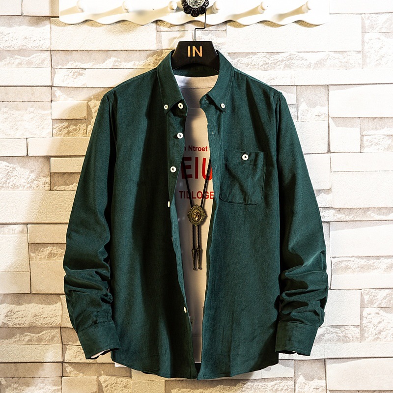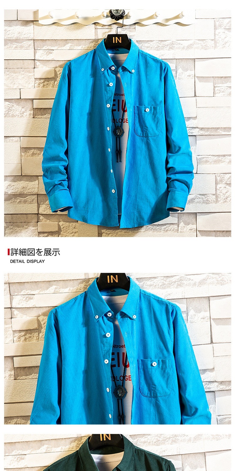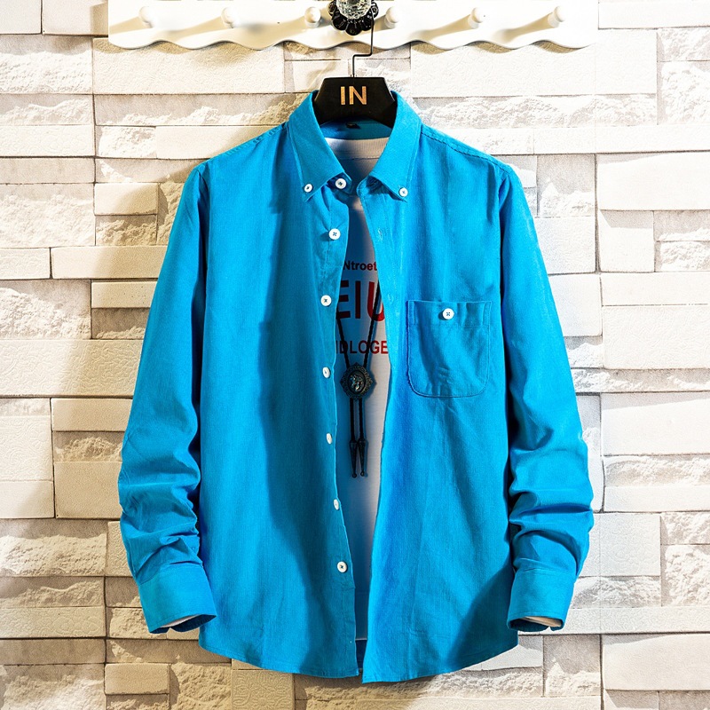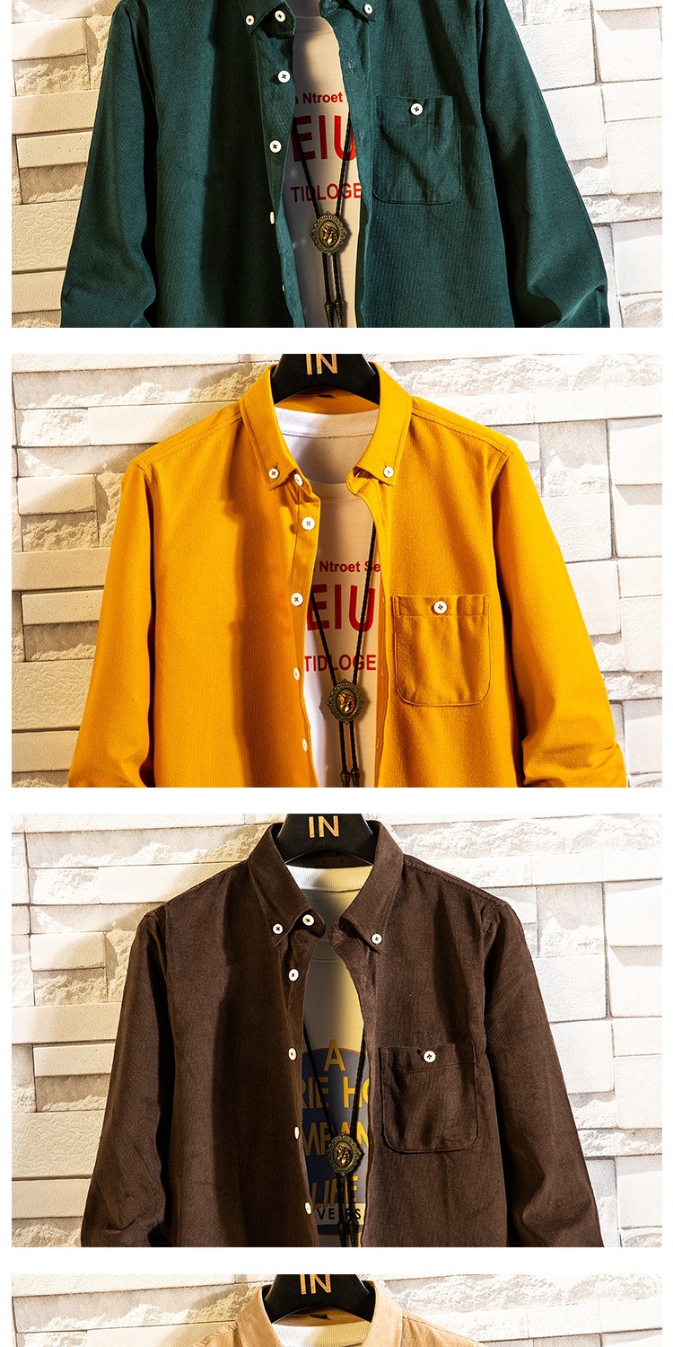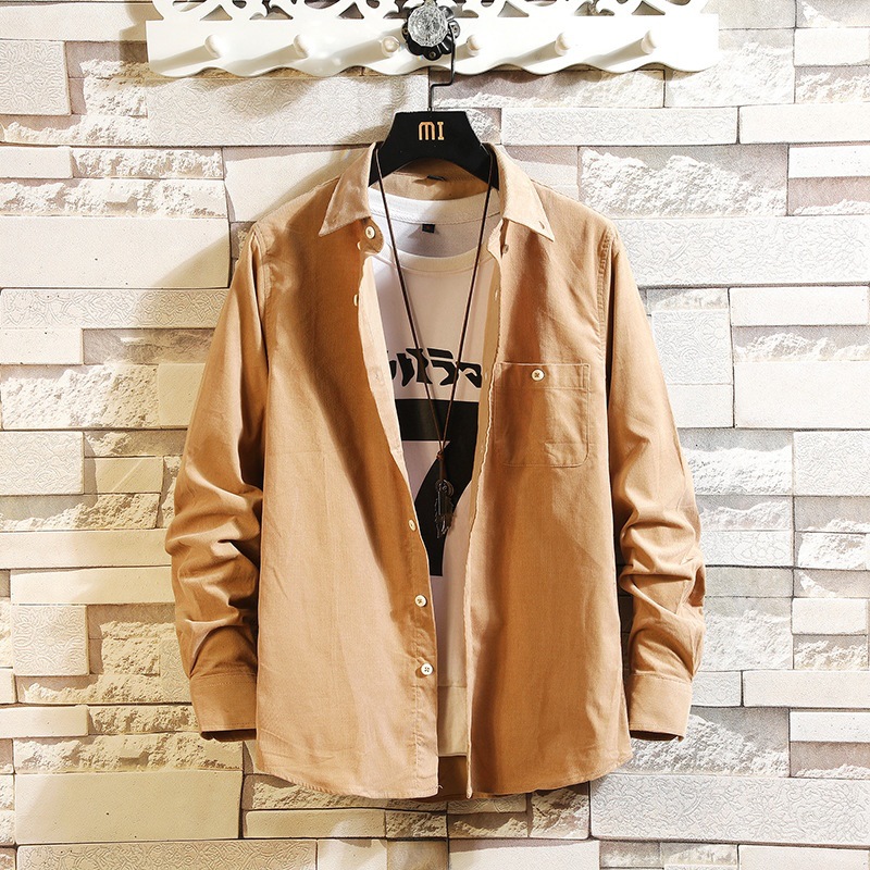 2021 새로운 도착 봄과 여름 남자의 긴 소매 셔츠 트렌디 코듀로이 셔츠 캐주얼 슬림-핏 솔리드 컬러 남성용 캐주얼 셔츠