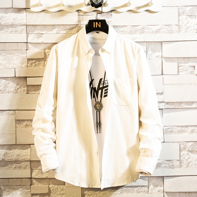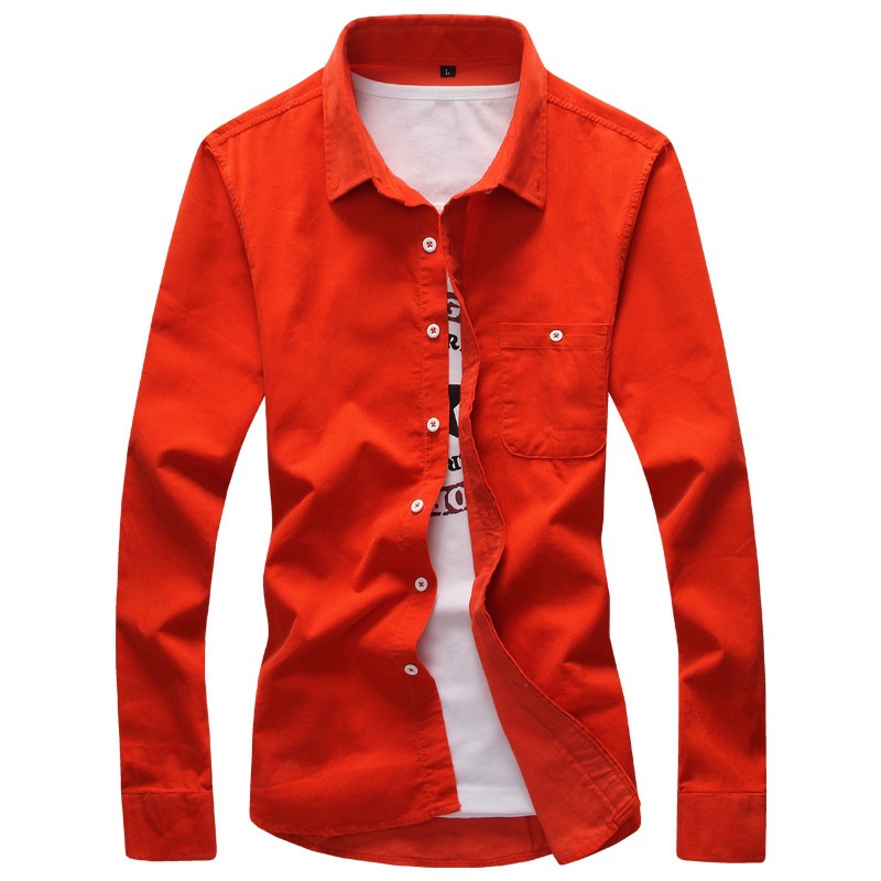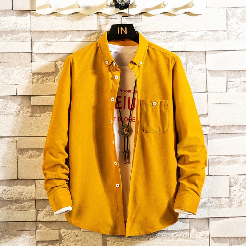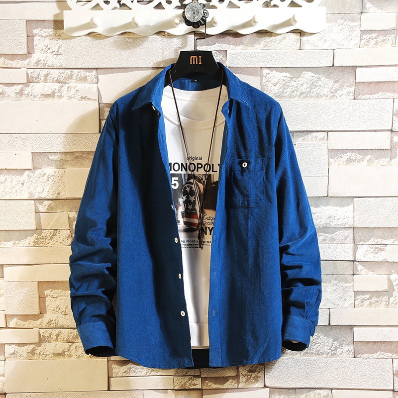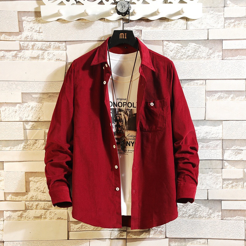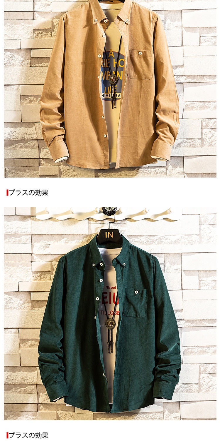 2021 새로운 도착 봄과 여름 남자의 긴 소매 셔츠 트렌디 코듀로이 셔츠 캐주얼 슬림-핏 솔리드 컬러 남성용 캐주얼 셔츠