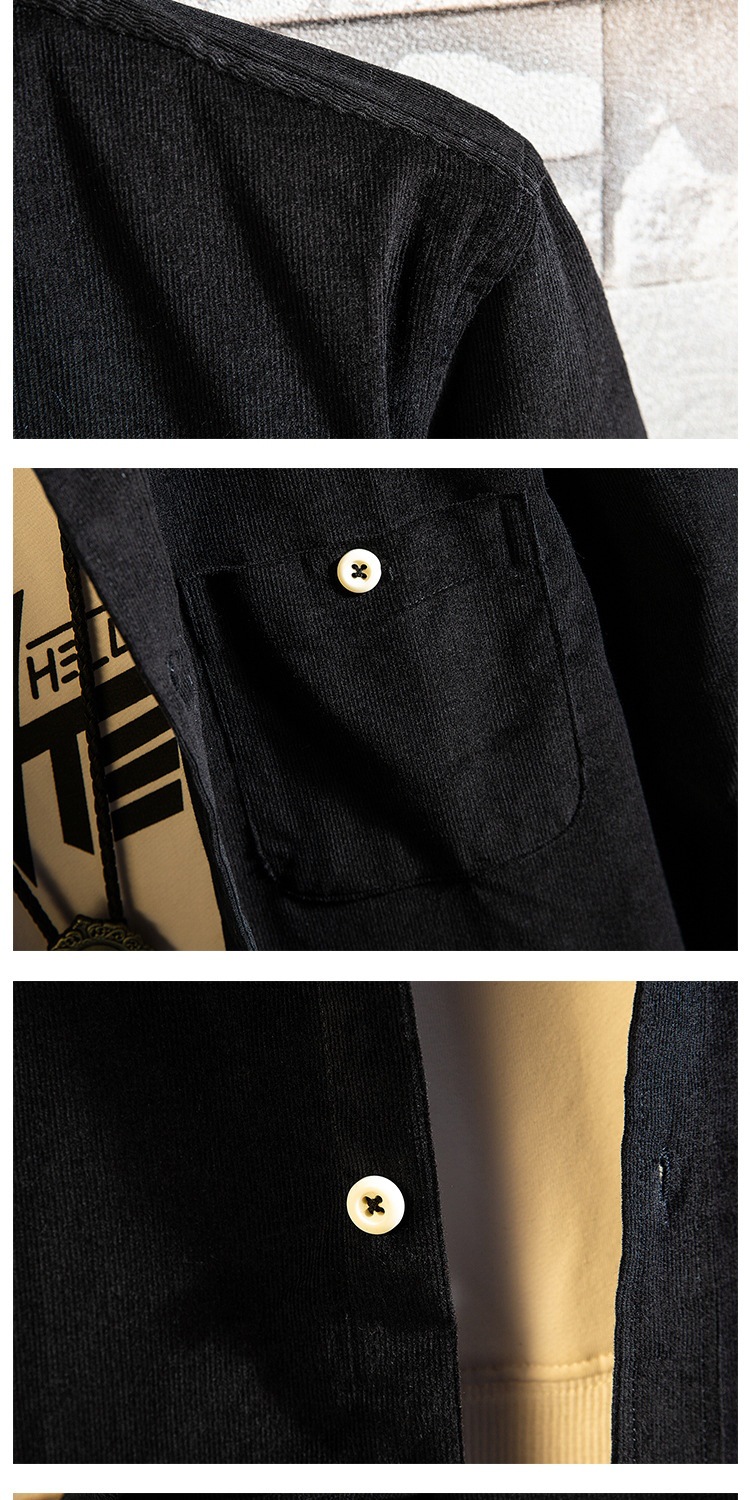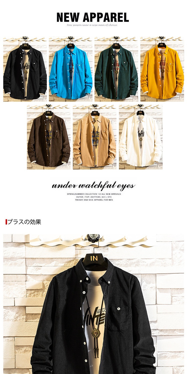 2021 새로운 도착 봄과 여름 남자의 긴 소매 셔츠 트렌디 코듀로이 셔츠 캐주얼 슬림-핏 솔리드 컬러 남성용 캐주얼 셔츠스토어 가기