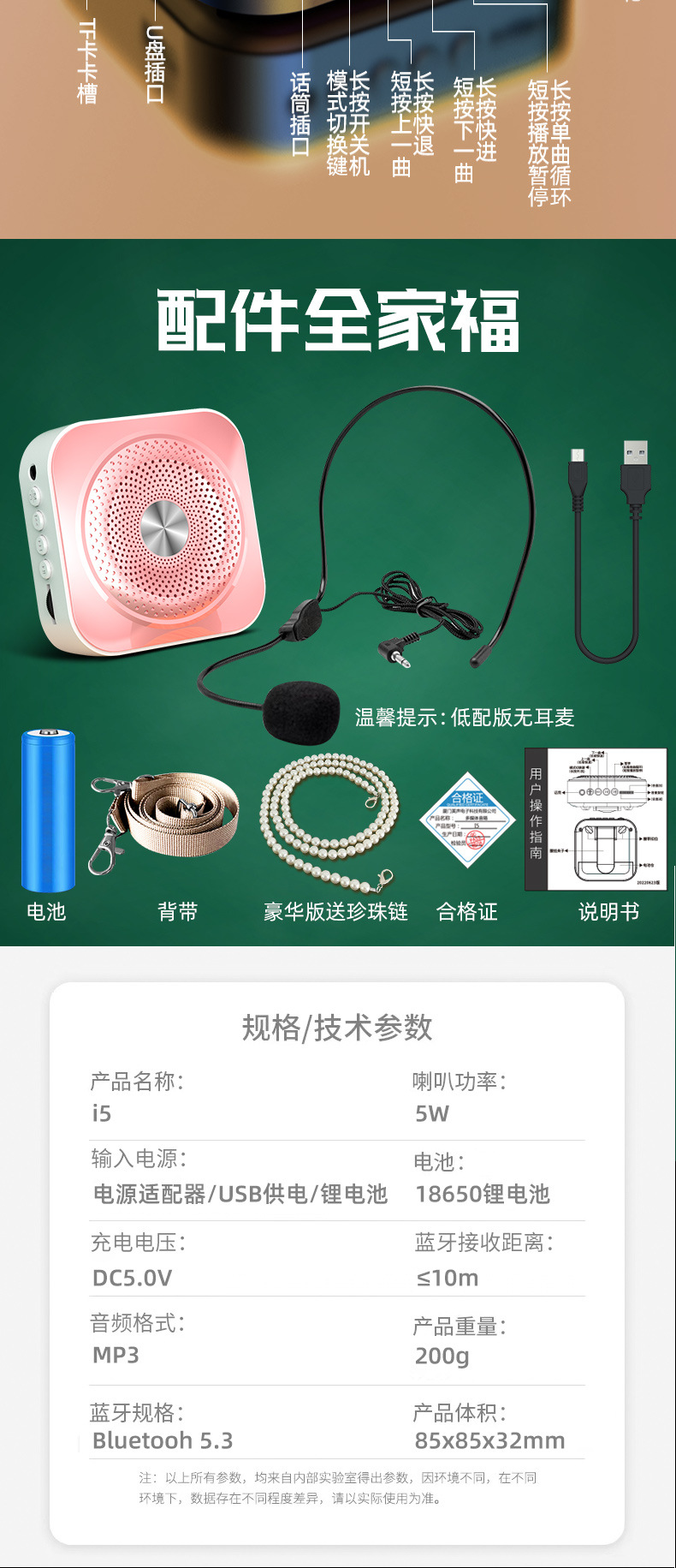 • 녹음 버전: 블루투스 + 헤드셋 마이크 + 배터리 용량 2배 증가 + 녹음 기능
