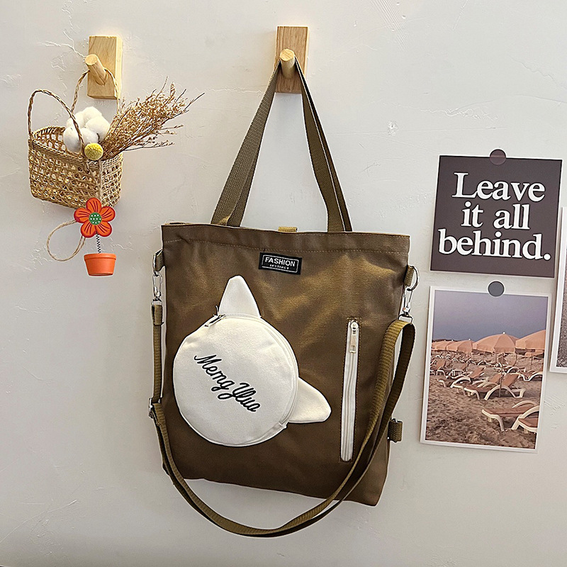 2022 새로운 일본식 대용량 캔버스 가방 여성용 심플 크로스바디 백 학생 귀여운 수선 숄더백