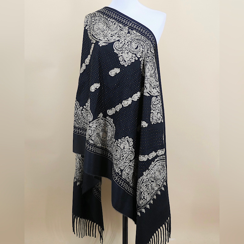 모조 캐시미어 스카프 여성용 모조 다이아몬드 캐슈 자수 에스닉 스타일 긴 목도리 술 이중 목적 케이프 케이프 사진스토어 가기