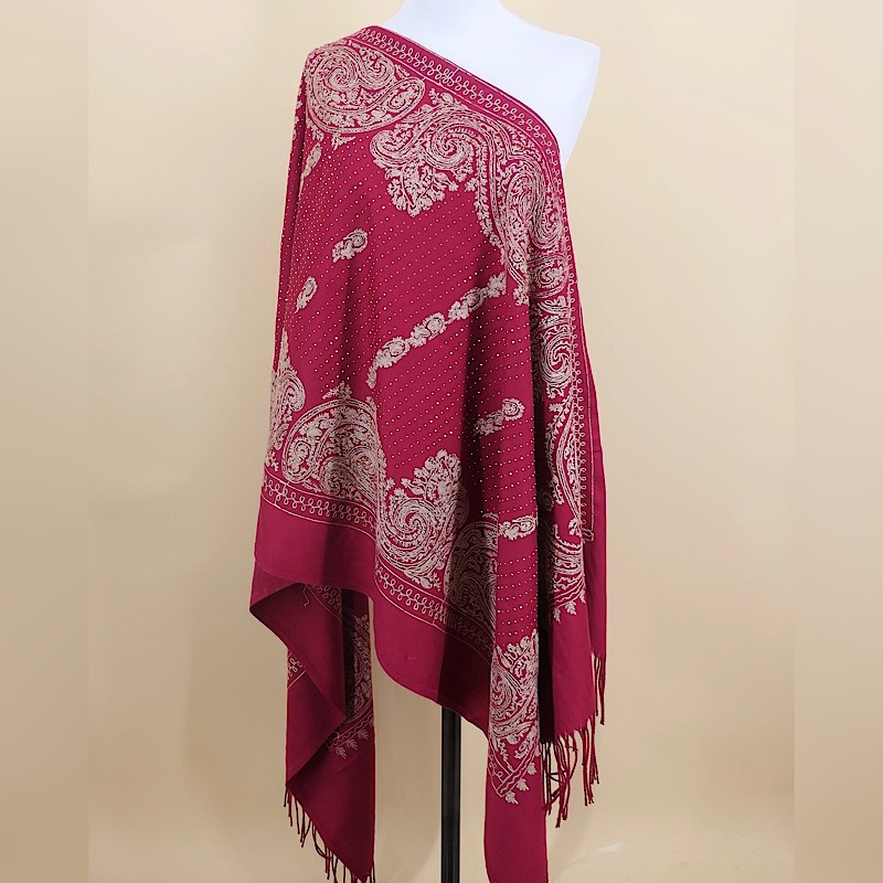 모조 캐시미어 스카프 여성용 모조 다이아몬드 캐슈 자수 에스닉 스타일 긴 목도리 술 이중 목적 케이프 케이프 사진