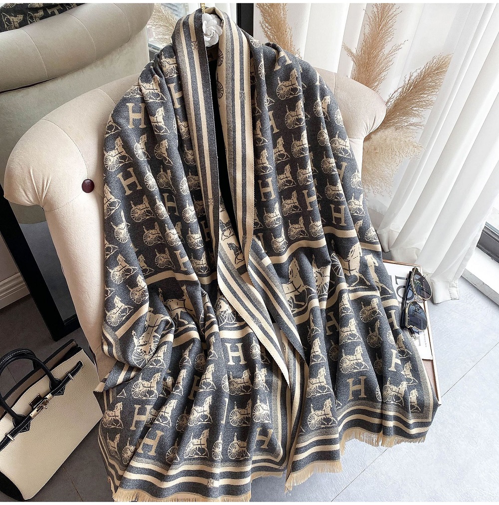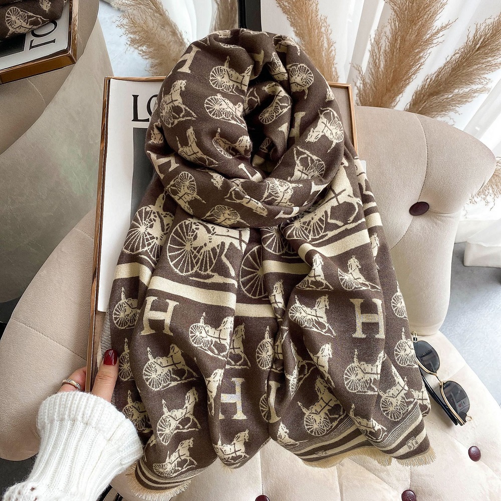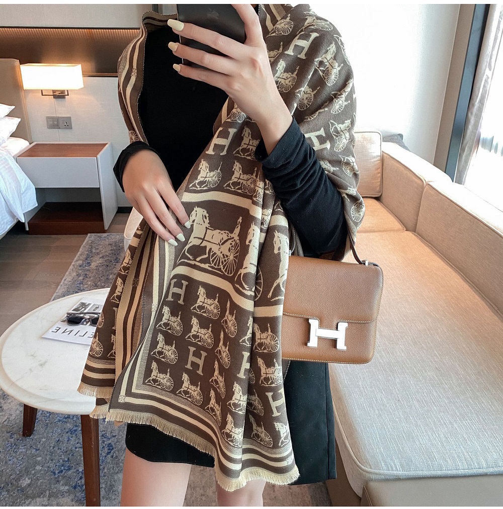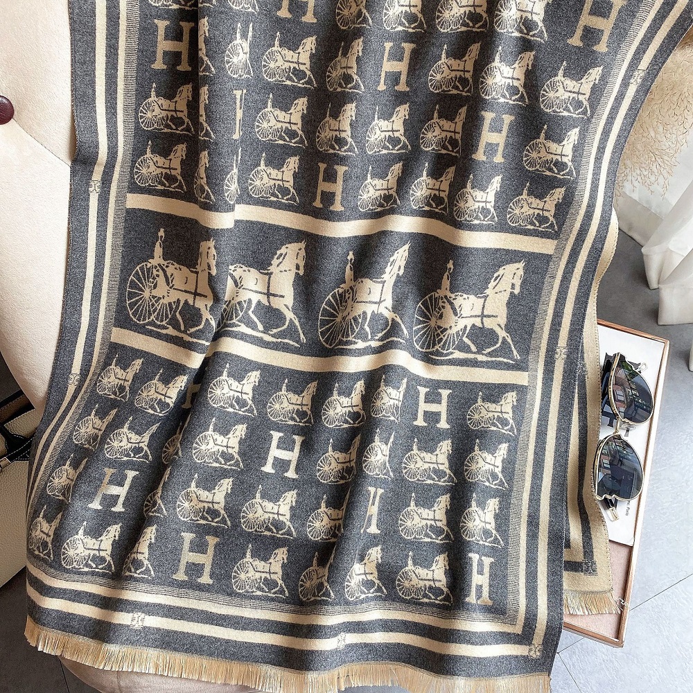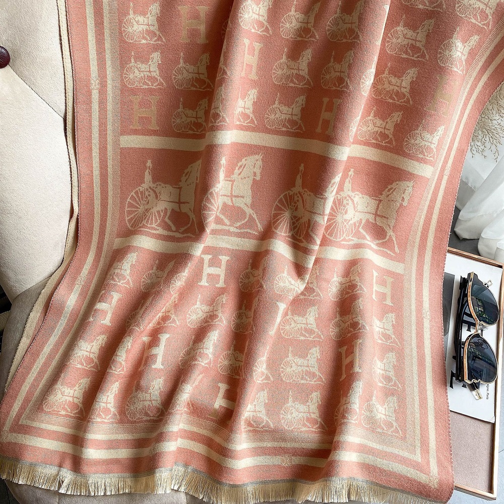 H 레터 캐리지 모조 캐시미어 스카프 여성용 가을과 겨울 모든 경기 에어컨 숄 이중 용도 양면 올매치 따뜻한 스카프스토어 가기