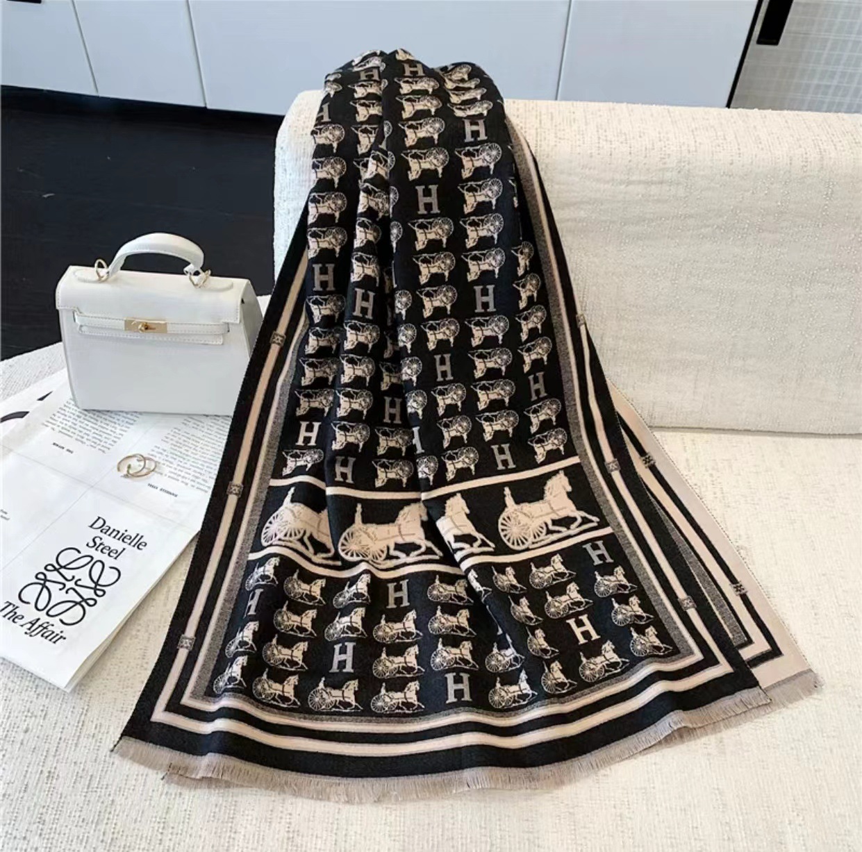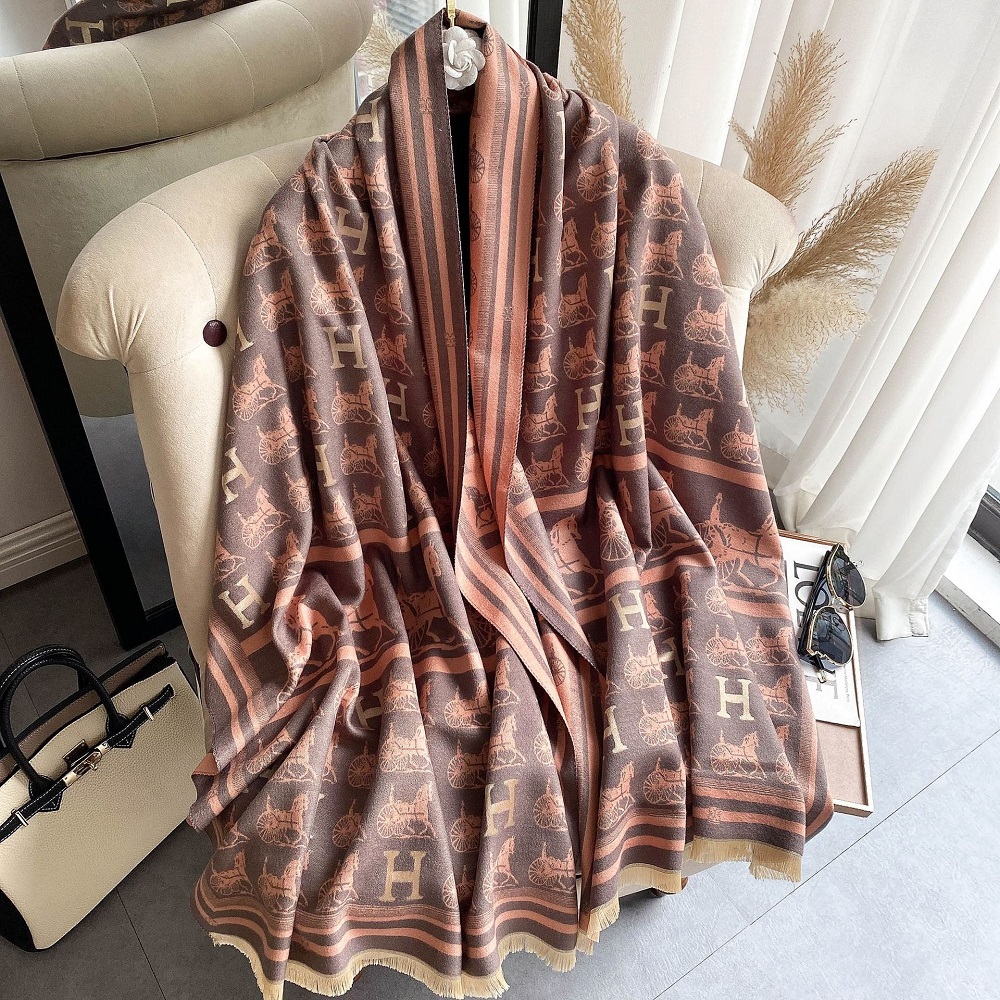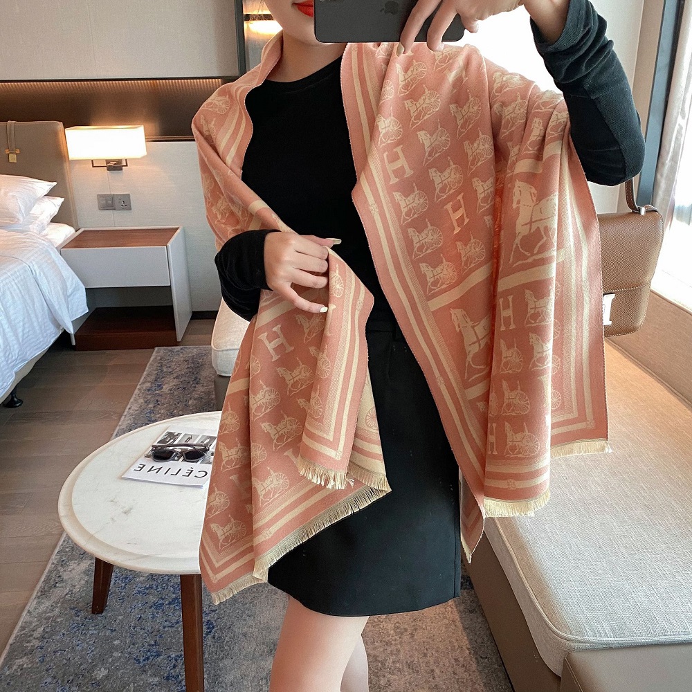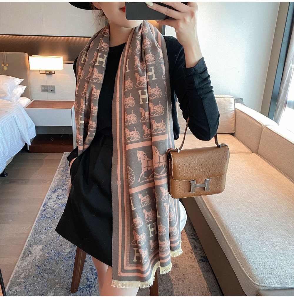 H 레터 캐리지 모조 캐시미어 스카프 여성용 가을과 겨울 모든 경기 에어컨 숄 이중 용도 양면 올매치 따뜻한 스카프스토어 가기