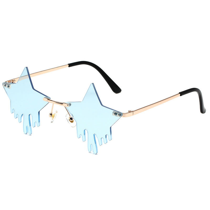 새로운 5 각형 별 물방울 모양의 화려한 프레임리스 트림 선글라스 댄스 눈물 재미있는 국경 간 대외 무역 눈