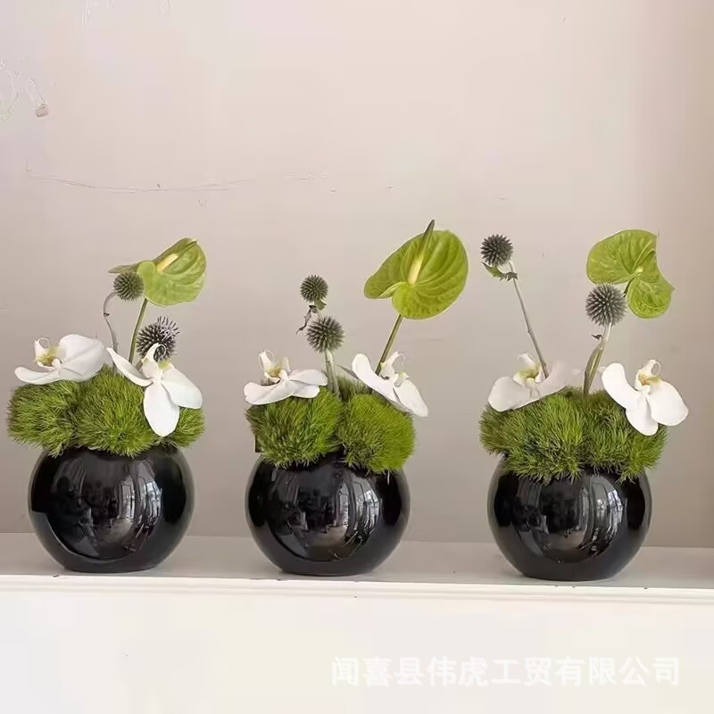 간단한 현대 블랙 구형 유리 꽃병 호텔 로비 데스크탑 화이트 홈 부드러운 장식
