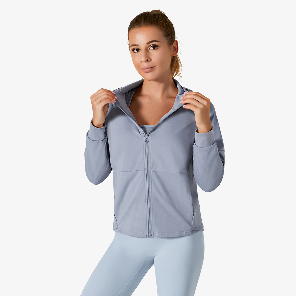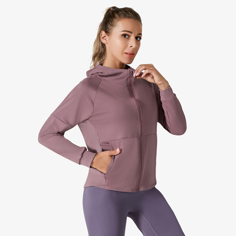 가을과 겨울 야외 스포츠 탑 느슨한 포켓 요가 의류 피트니스 속건 후드 가디건 지퍼 스포츠 재킷