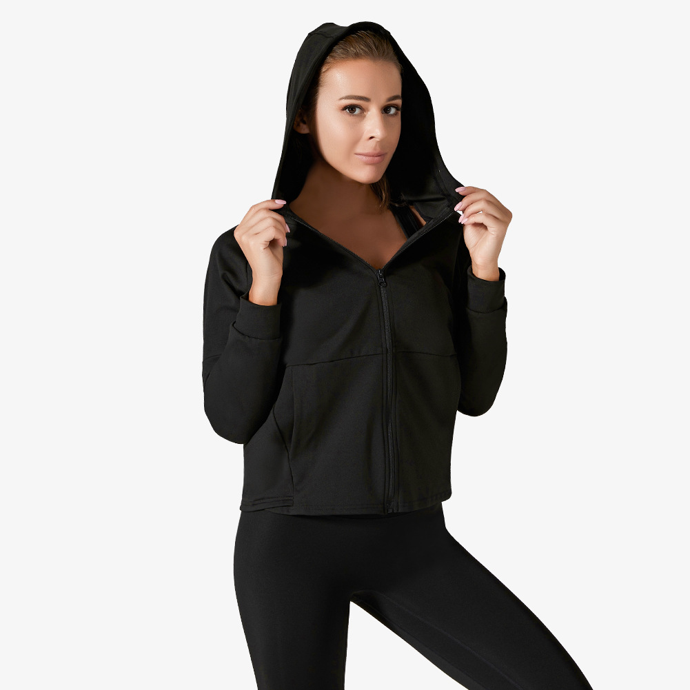가을과 겨울 야외 스포츠 탑 느슨한 포켓 요가 의류 피트니스 속건 후드 가디건 지퍼 스포츠 재킷스토어 가기