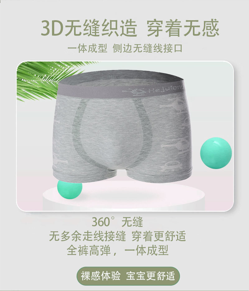 跨境负离子按摩石墨烯大码平角裤男一片式无缝无痕莫代尔男士内裤RMB:6.49